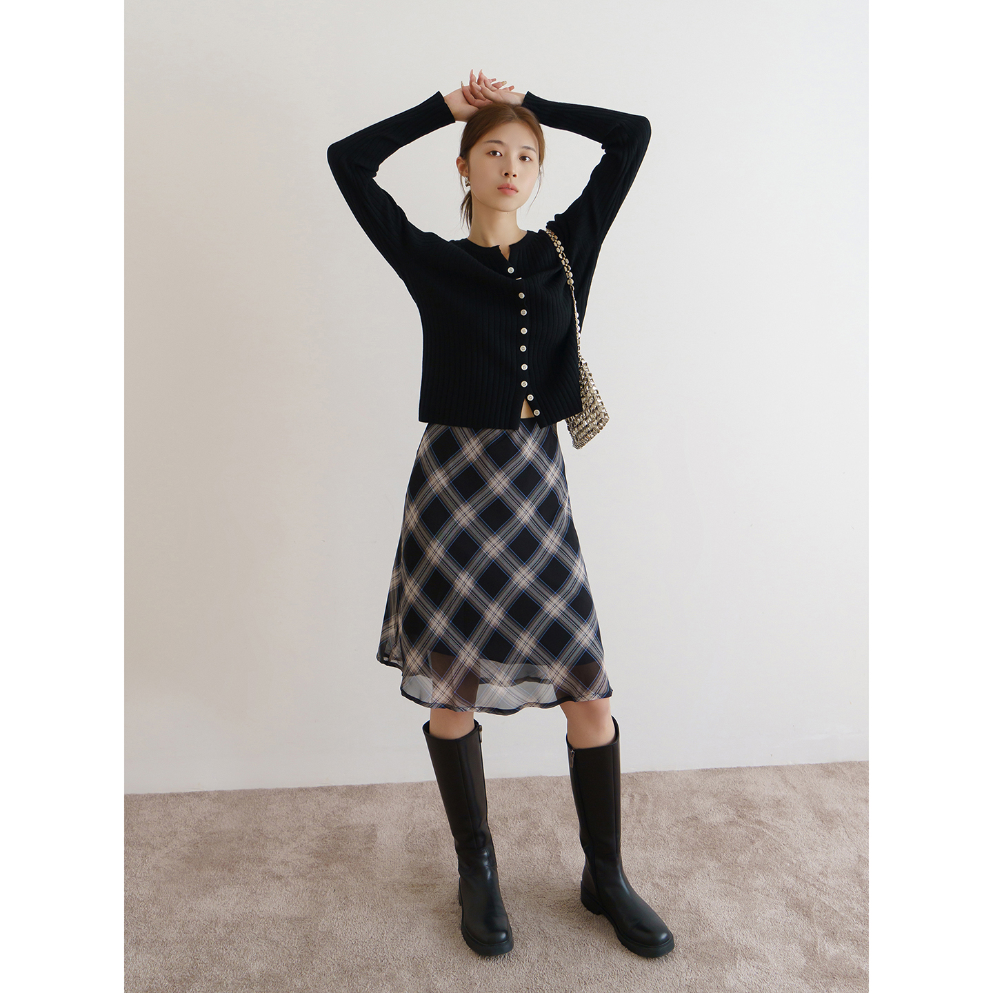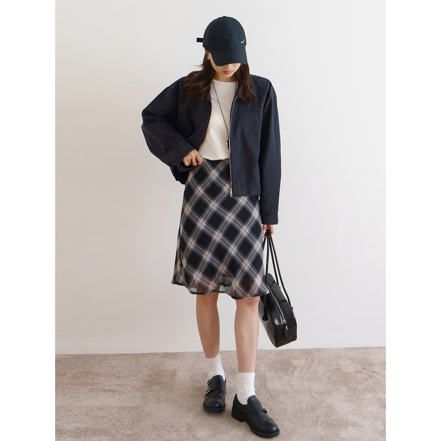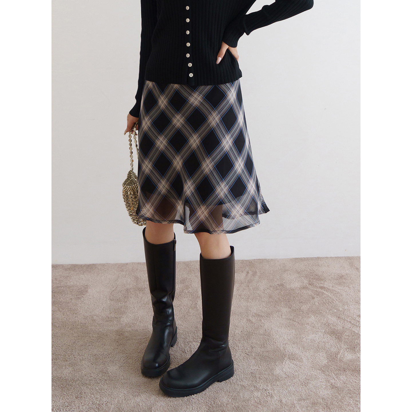 floradanc复古格纹A字半身裙女2025秋季高腰显瘦百搭包臀鱼尾短裙
