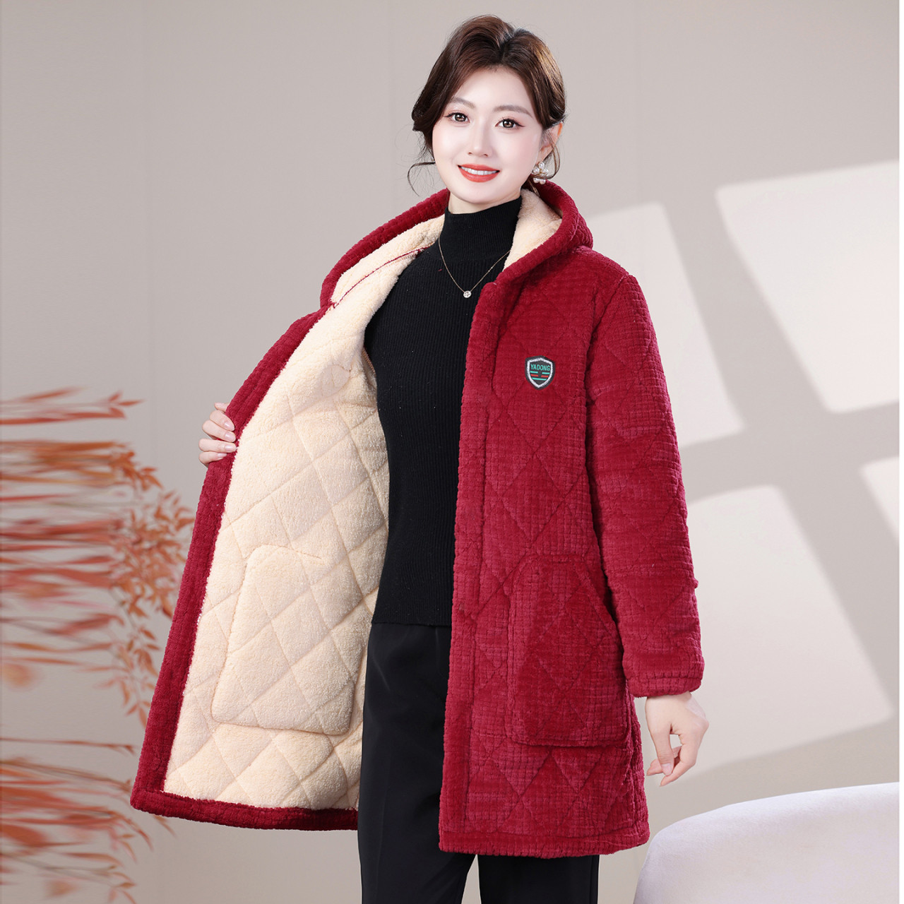加厚罩衣女新款保暖耐脏中长款棉