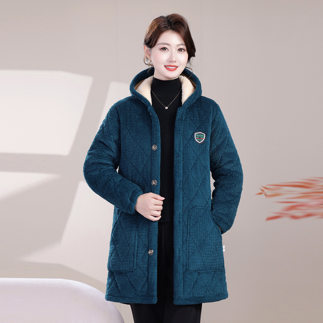 冬季加绒加厚罩衣女新款保暖耐脏中长款棉袄大码宽松棉衣防寒外套