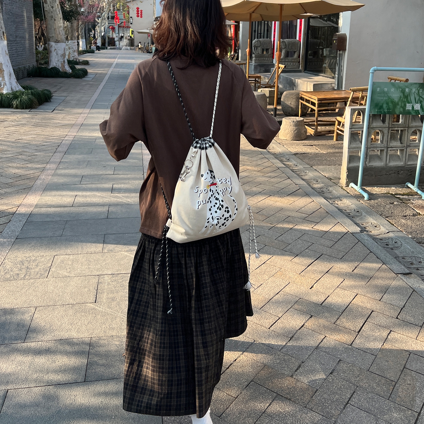nothe Case「铃铛小狗」可爱斑点狗印花双肩包 休闲抽绳束口背包