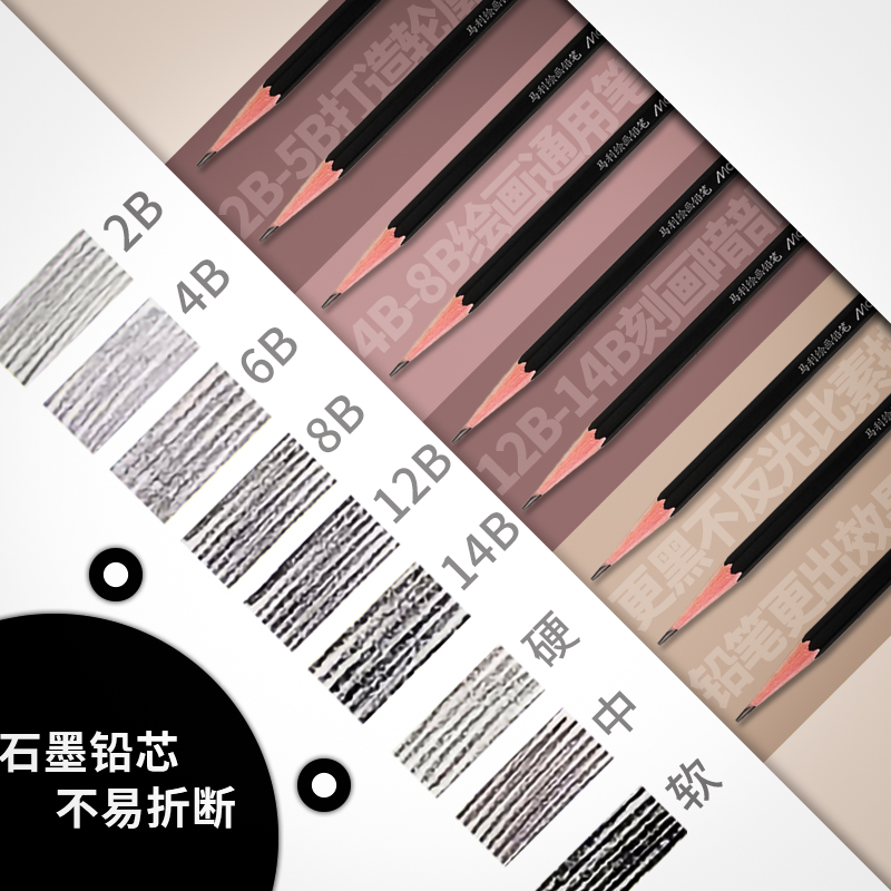 马利炭笔素描铅笔美术生专用套装绘画炭条hb2b4b6b8b10b12b14b碳笔软中硬初学者速写绘图学生考试专用工具