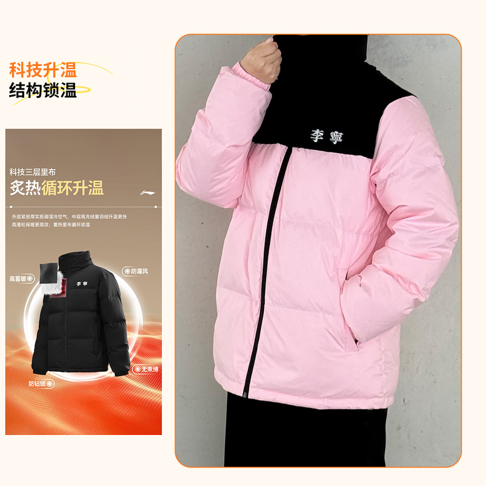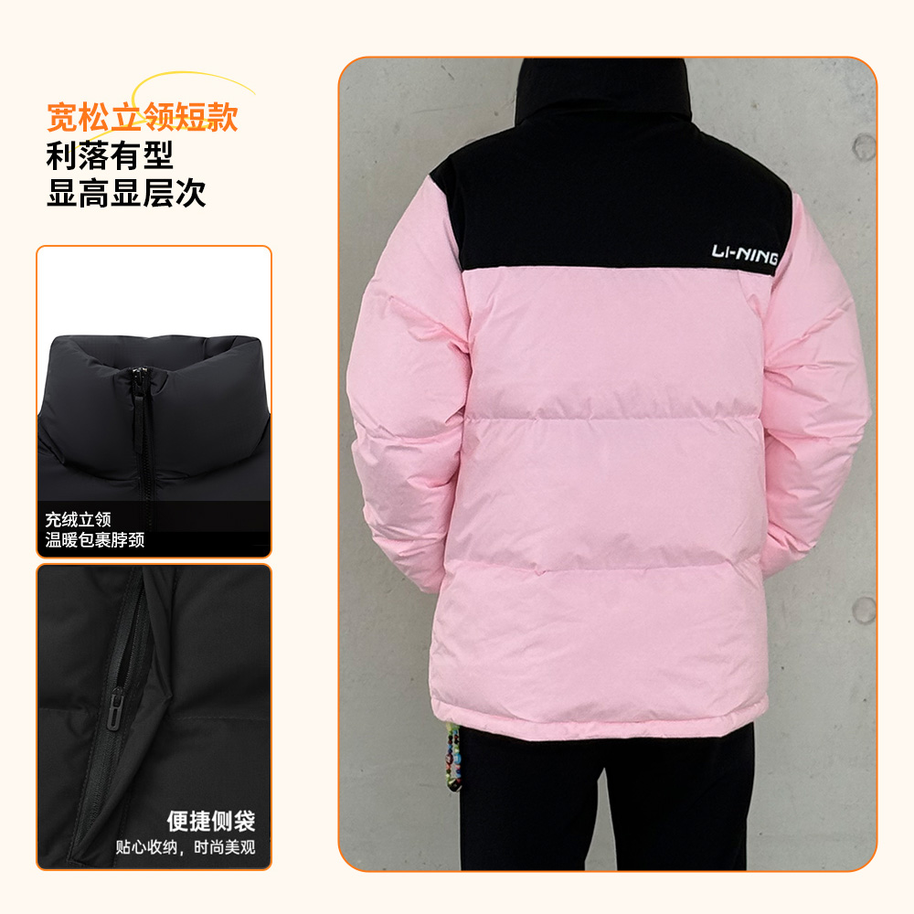 李宁火锅羽绒服女冬季新款情侣外套短款鸭绒开衫防风保暖休闲外套