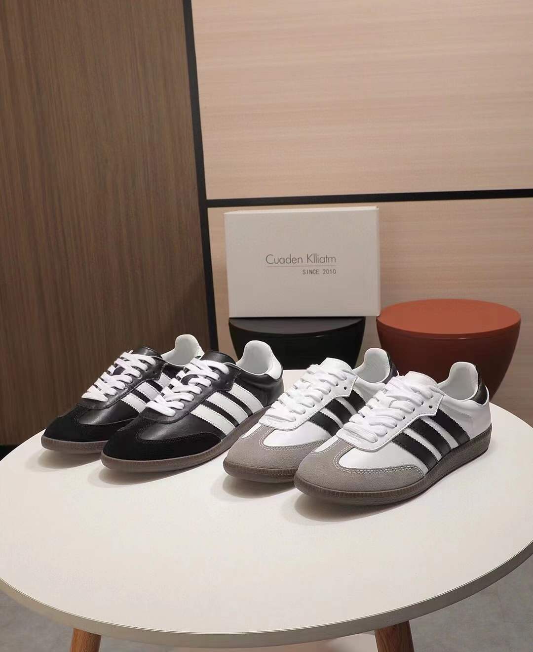 何况平跟圆头德训鞋拼色女鞋牛皮