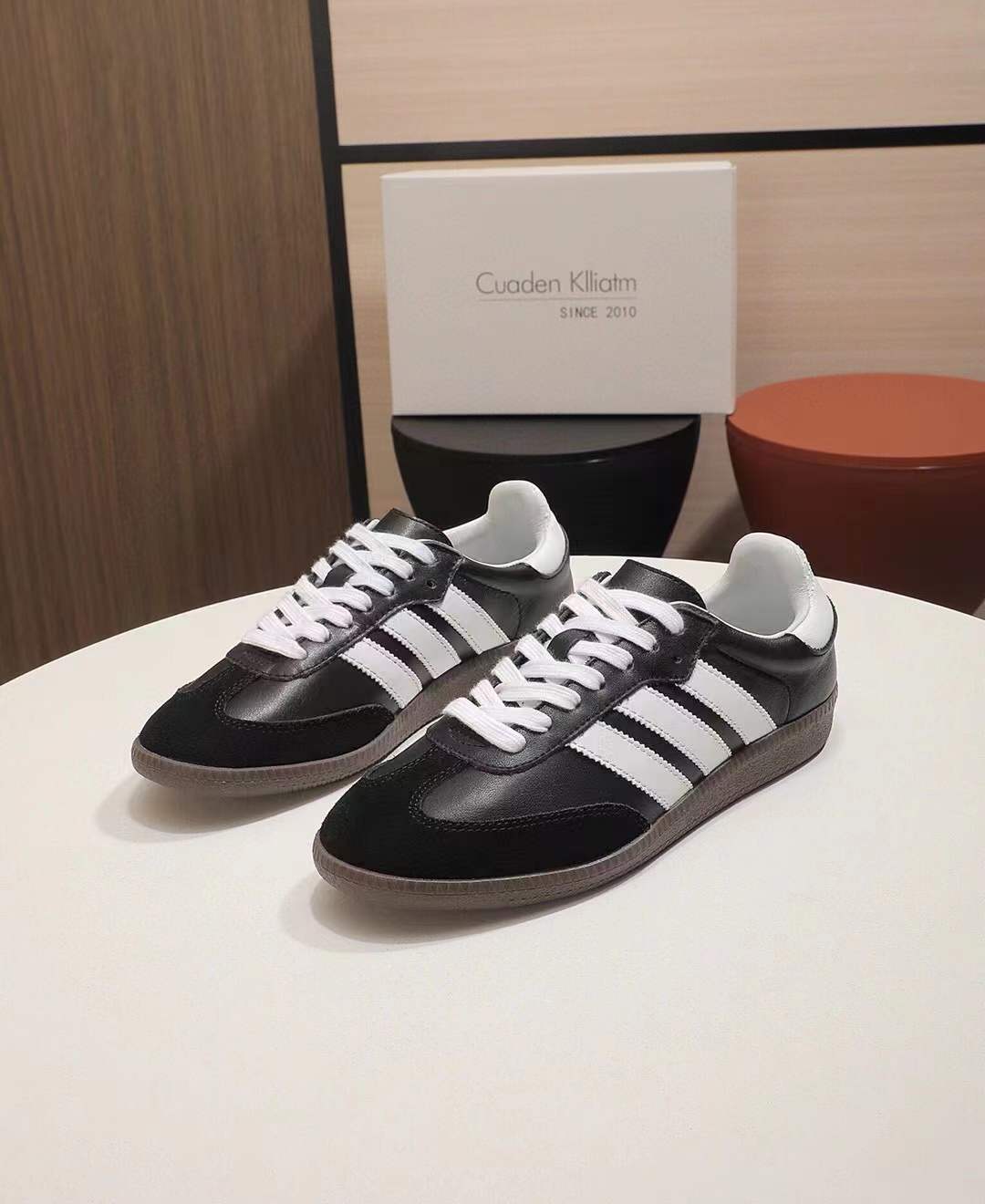 欧美外贸原单休闲德训鞋圆头平跟系带拼色牛皮低帮女鞋2023年春新