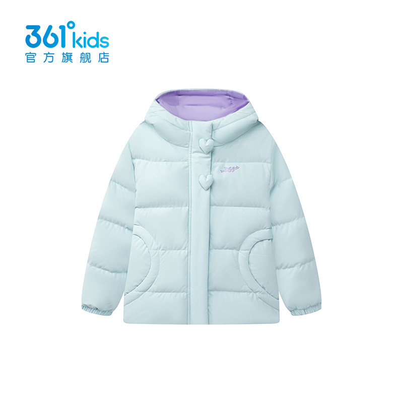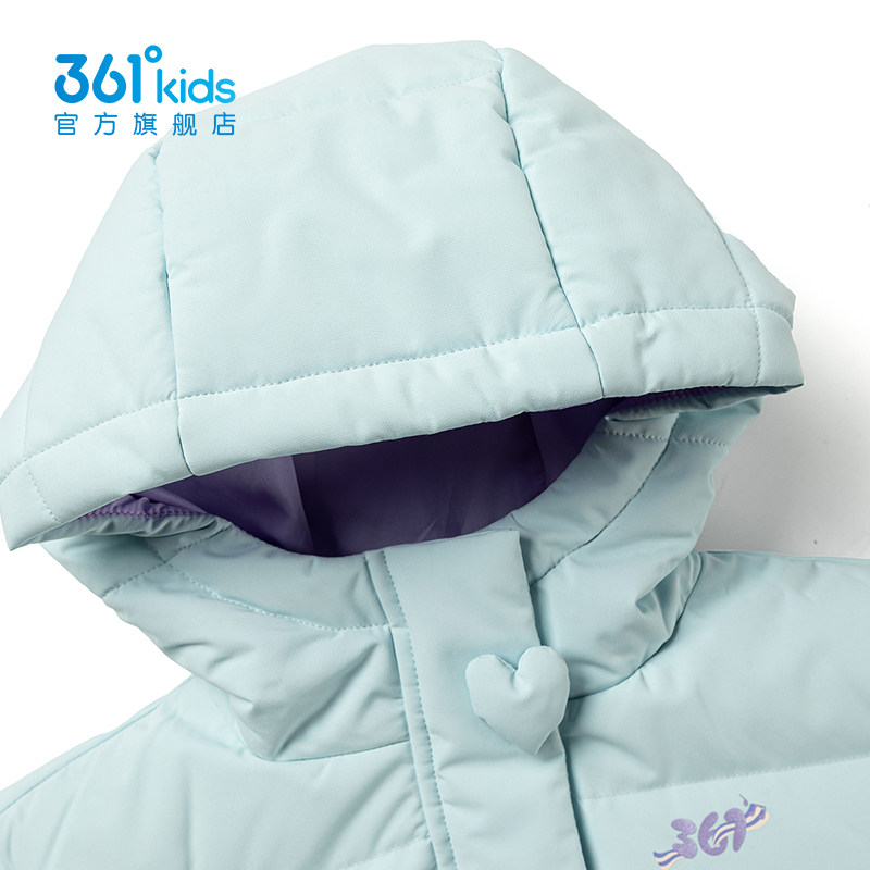 361度女童短款连帽羽绒服2025冬季新款加厚紫色保暖外套K62544906