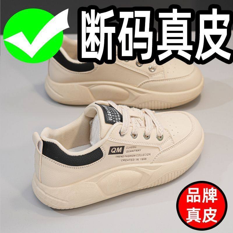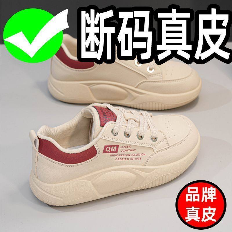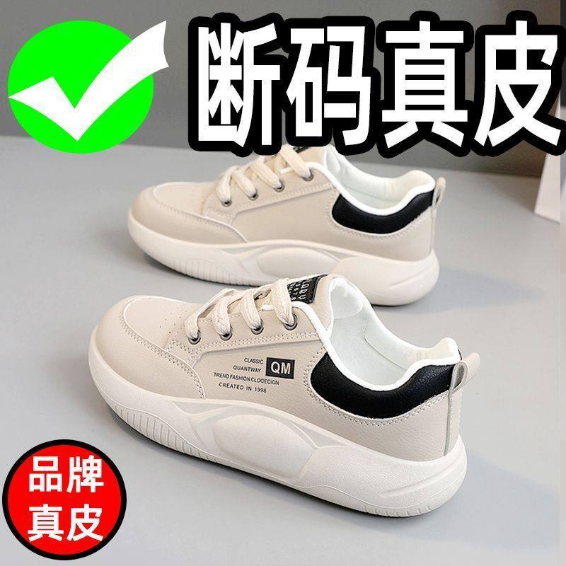 断码低帮真皮运动鞋女2025春夏新款厚底老爹鞋软底防滑跑步鞋女