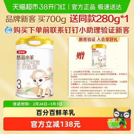【品牌新客】100%鲜羊乳-伊利金领冠悠滋小羊3段700g婴幼儿羊奶粉