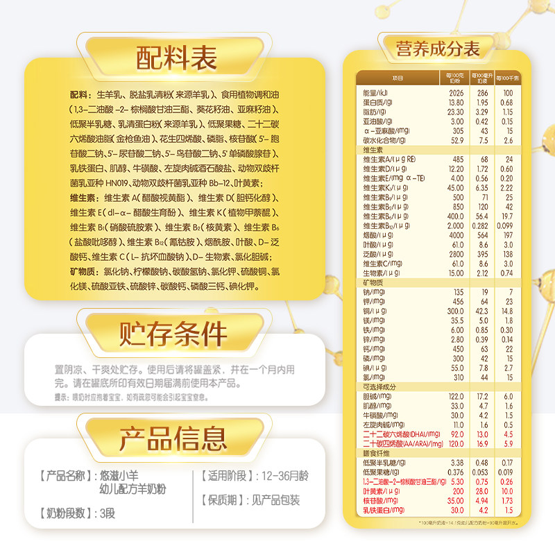 金领冠悠滋小羊3段婴幼儿羊奶粉