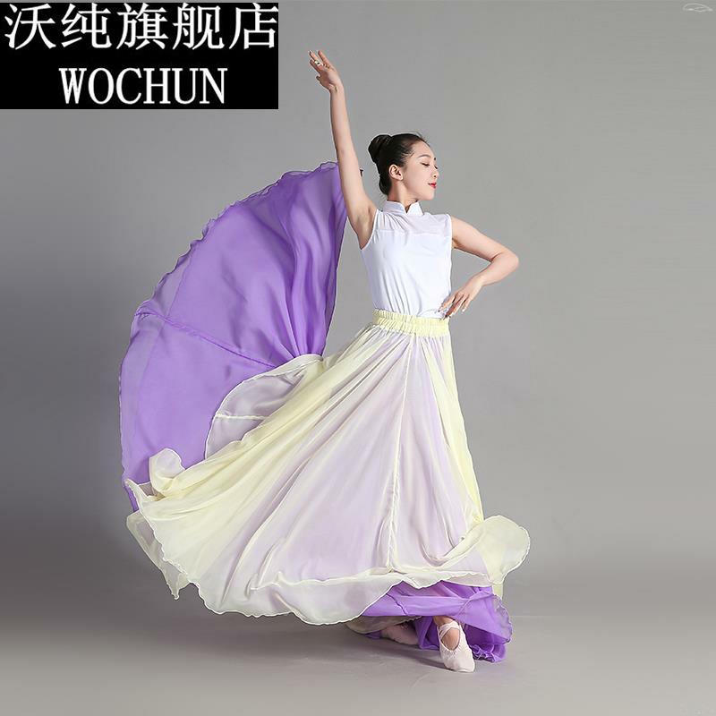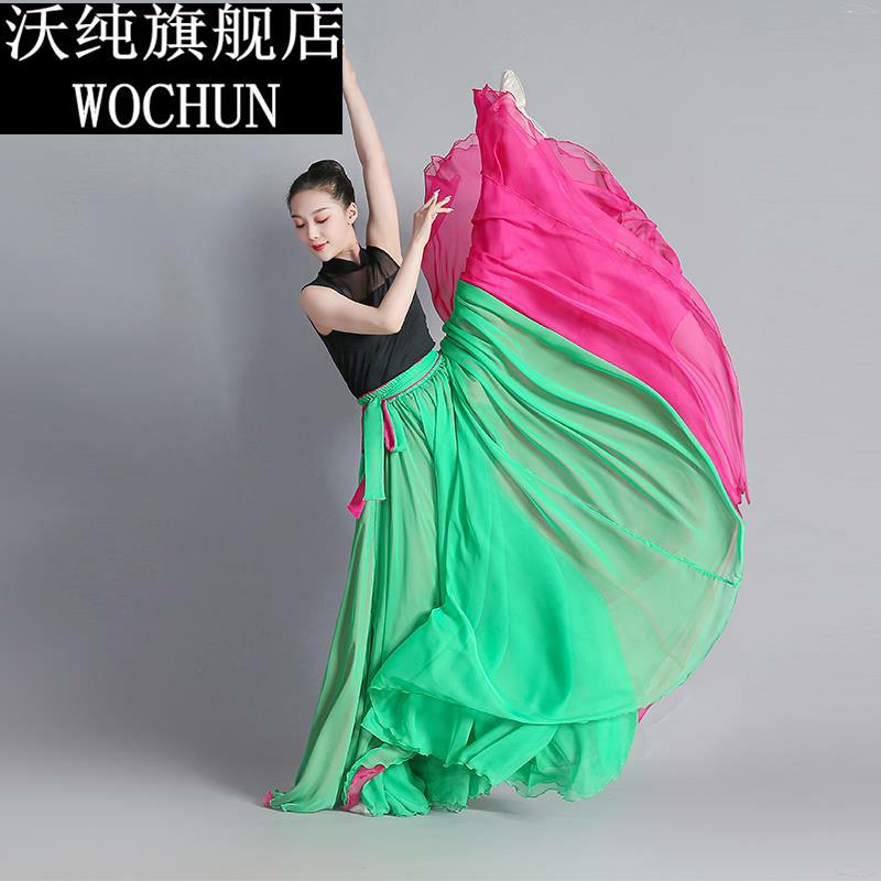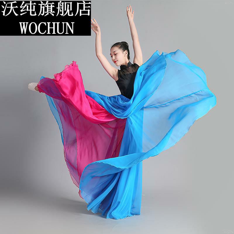 双色古典舞蹈半身裙子女飘逸练功服720度天丝大摆纱裙表演服长裙