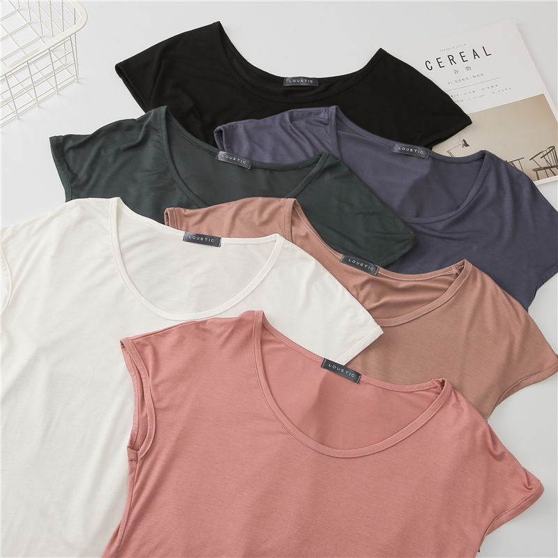 2024新款莫代尔修身短袖T恤女夏百搭打底衫薄款内搭纯色大码上衣