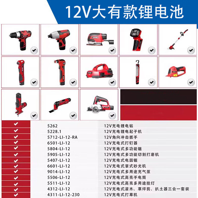 大有5120小强手电钻12v锂电池5241通用5262锂电充电钻5307手枪钻
