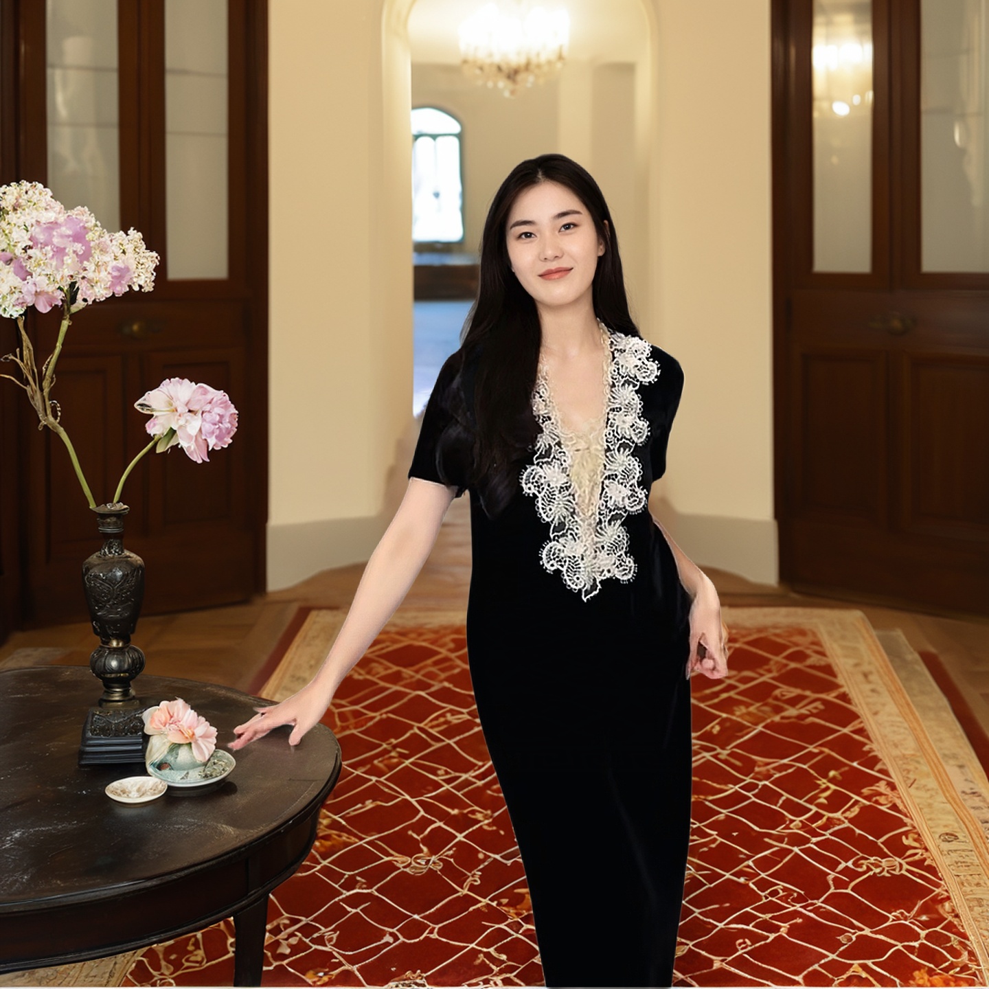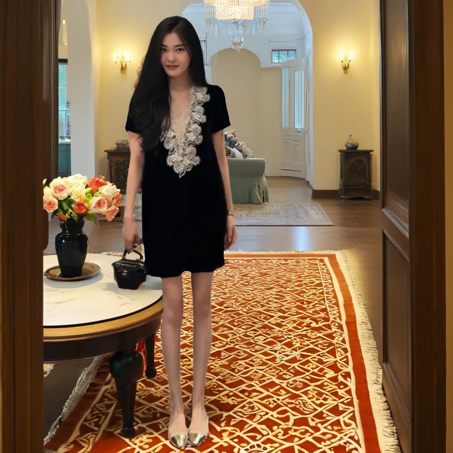 大码女装新款夏季轻奢重工胖mm显瘦遮肚连衣裙气质名媛风蕾丝裙子