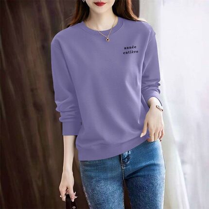 秋冬款女士纯棉长袖卫衣时尚新款洋气百搭宽松遮肉显瘦圆领上衣服
