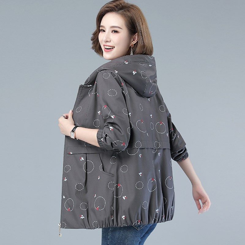 2024春装新款中老年外套女宽松洋气大码妈妈装纯棉风衣女波点上衣