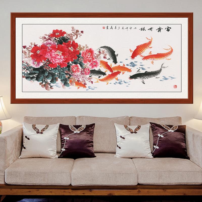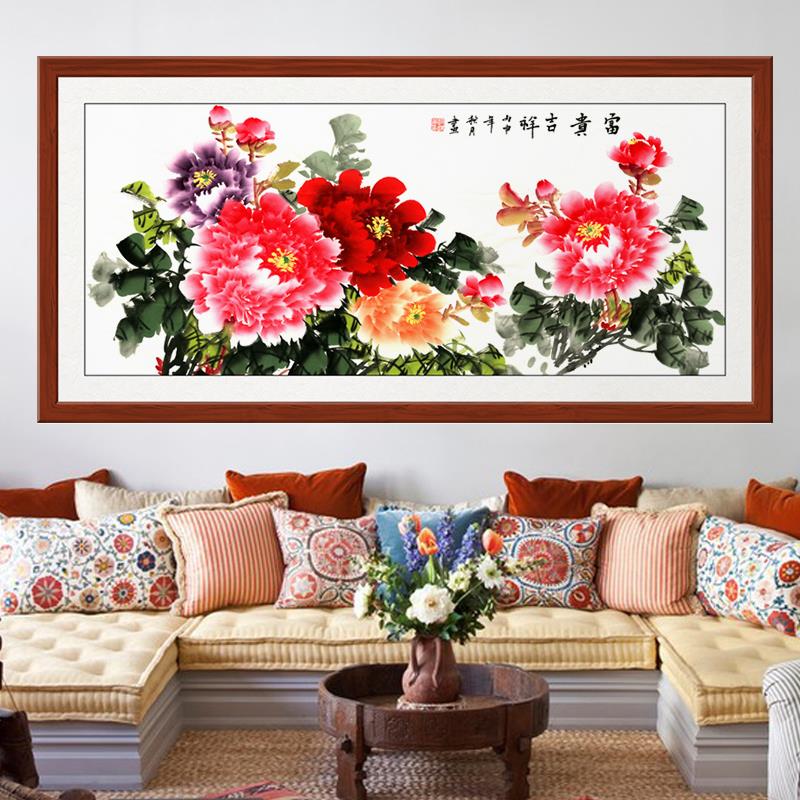 花开富贵贴画沙发背景墙客厅壁画中式墙画壁纸墙贴自粘年画墙贴画