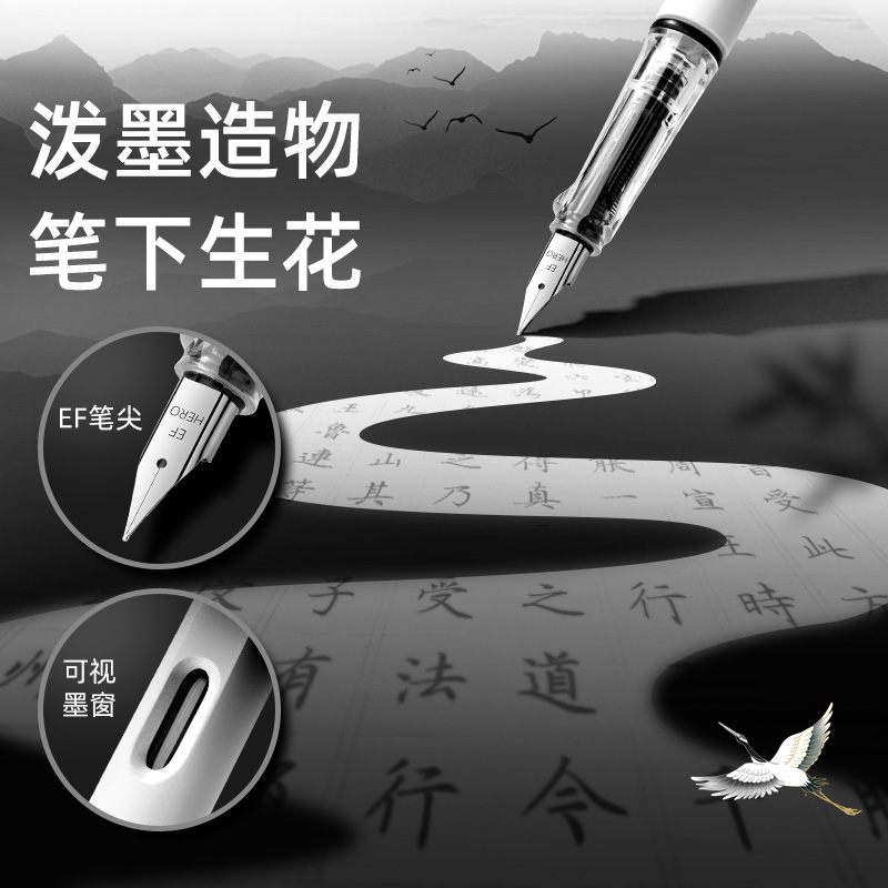 英雄牌359钢笔男士高档精致高颜值成人专用练字墨囊墨水可替换笔尖小学生专用三年级儿童初学者官方旗舰店