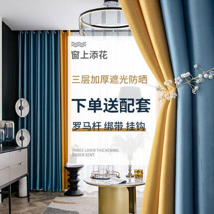 拼接客厅阳台遮光布隔热防晒窗帘