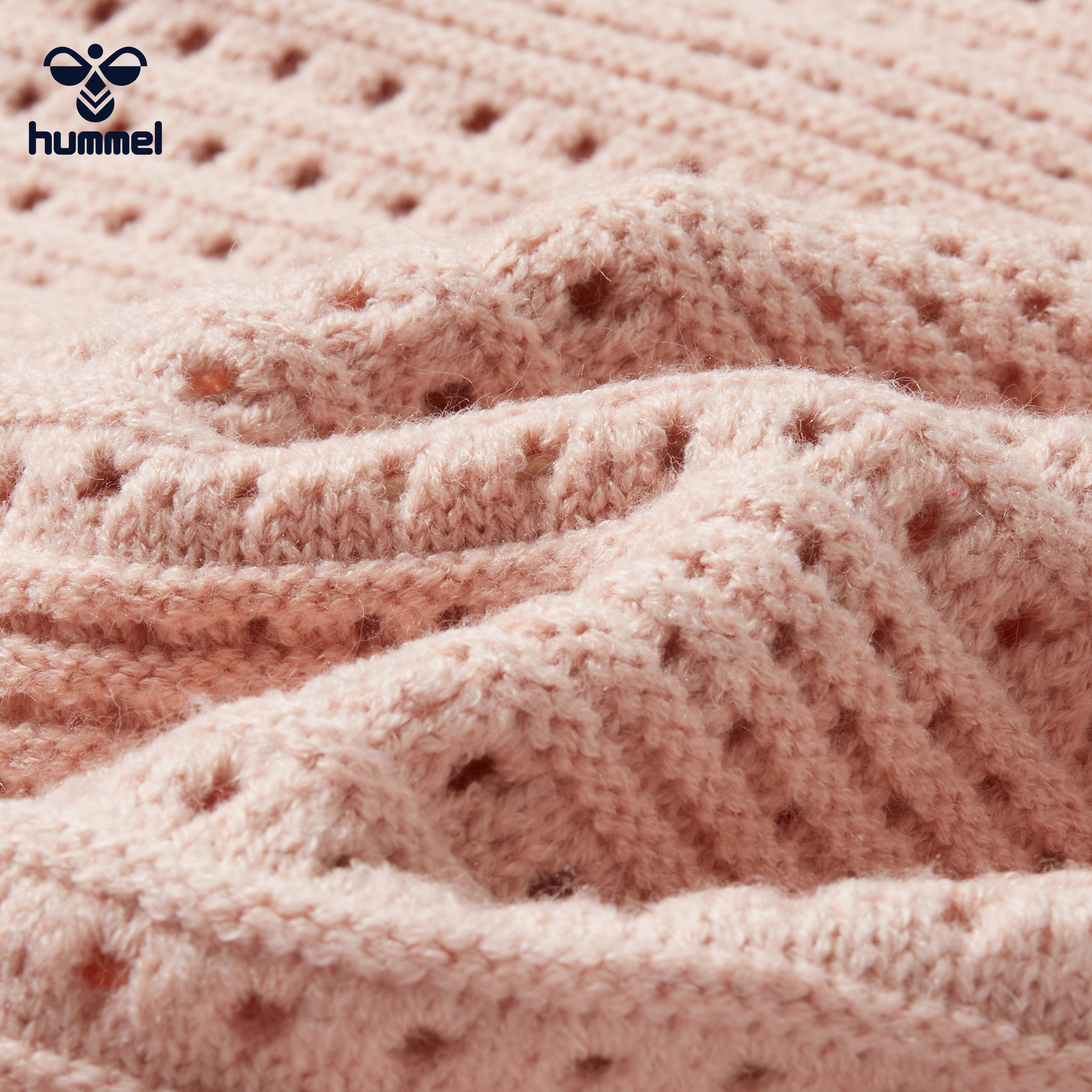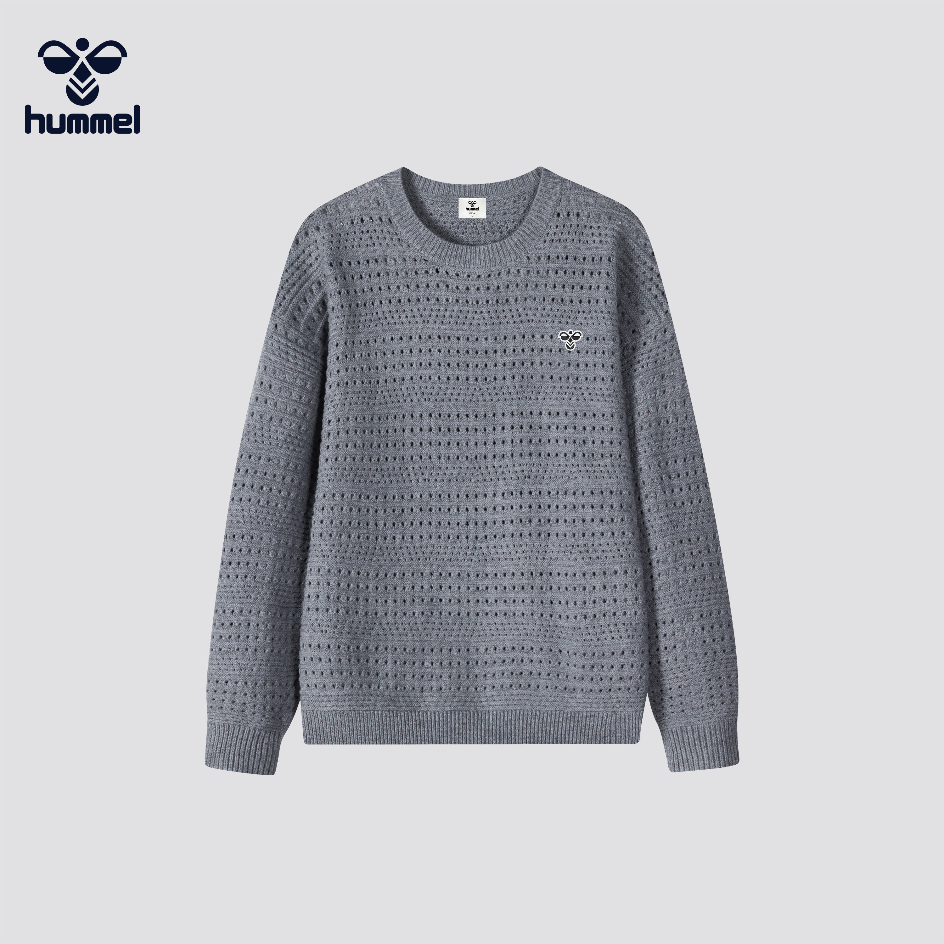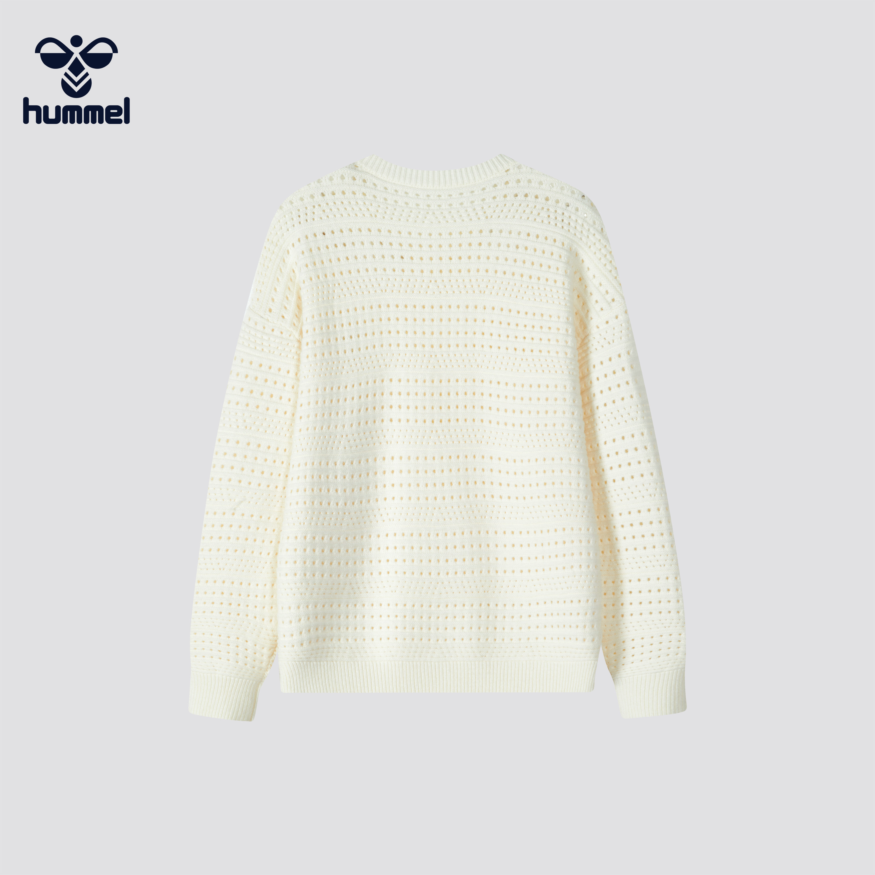 HUMMEL极简风镂空针织衫圆领长袖白色百搭设计男女感毛衣套头简约