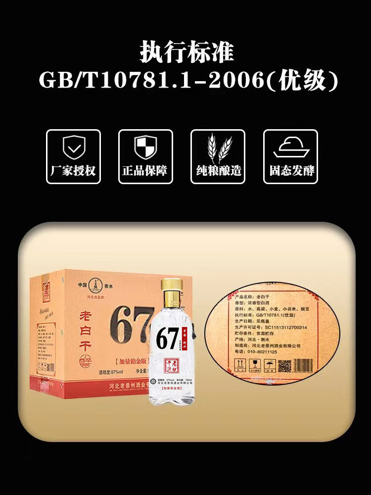 衡水产地正宗老白干67度72度700ml高度白酒浓香纯粮固态柔和试饮