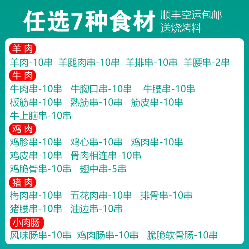露营烧烤食材半成品牛羊肉串五花肉鸡翅中烤腰子7件任选烤串套餐