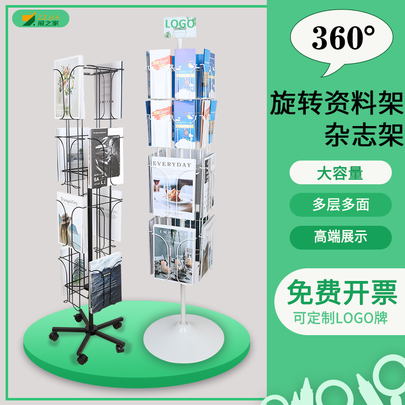 立式旋转杂志报刊收纳资料架 宣传单页架子落地展示架 册书报置物