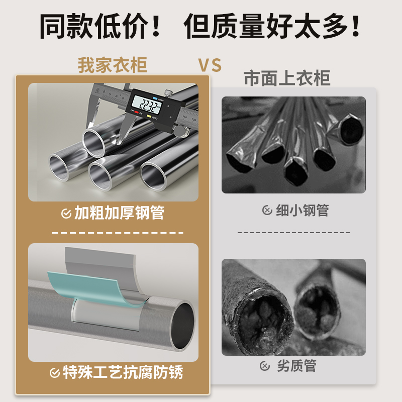 家用简易衣柜卧室布衣柜全钢架全挂衣结实耐用出租房儿童收纳衣柜