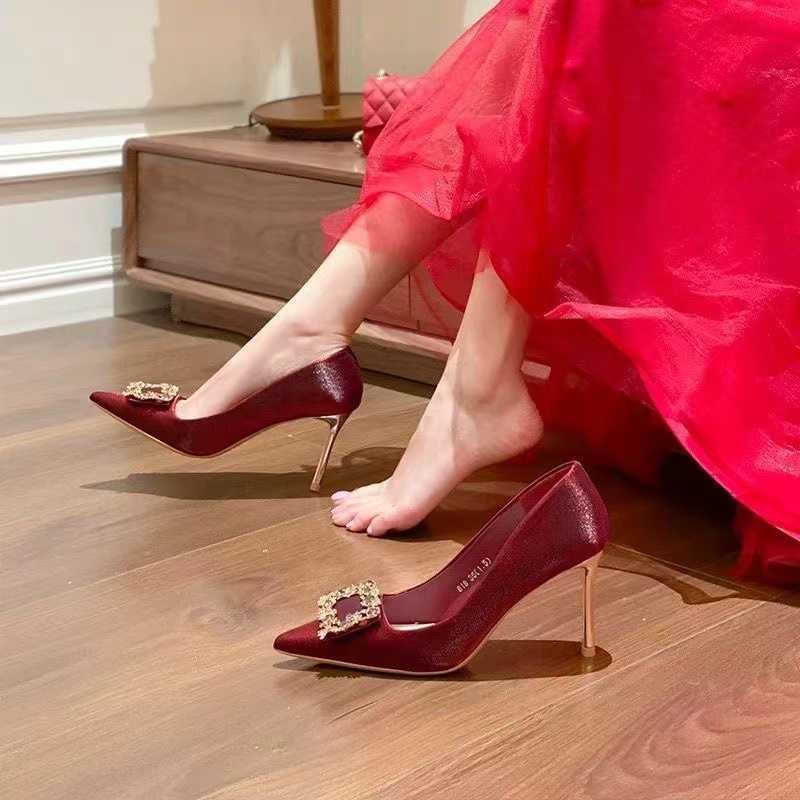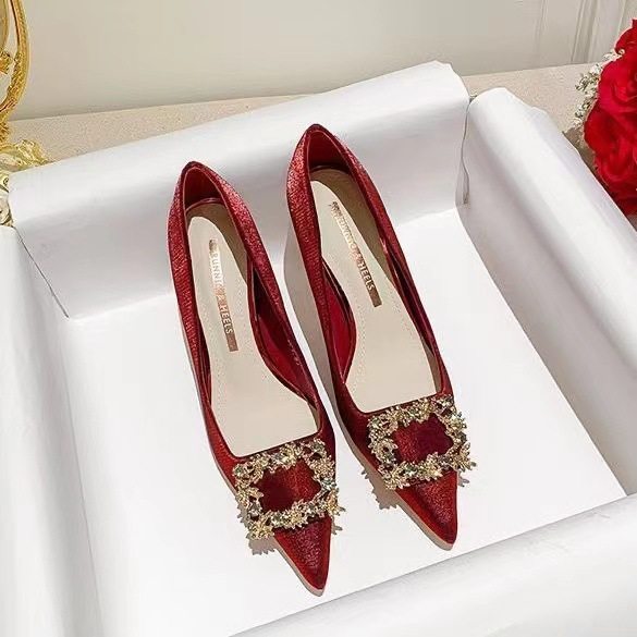 婚鞋女2025年新款红色高跟鞋子结婚新娘鞋订婚中式秀禾鞋婚纱两穿