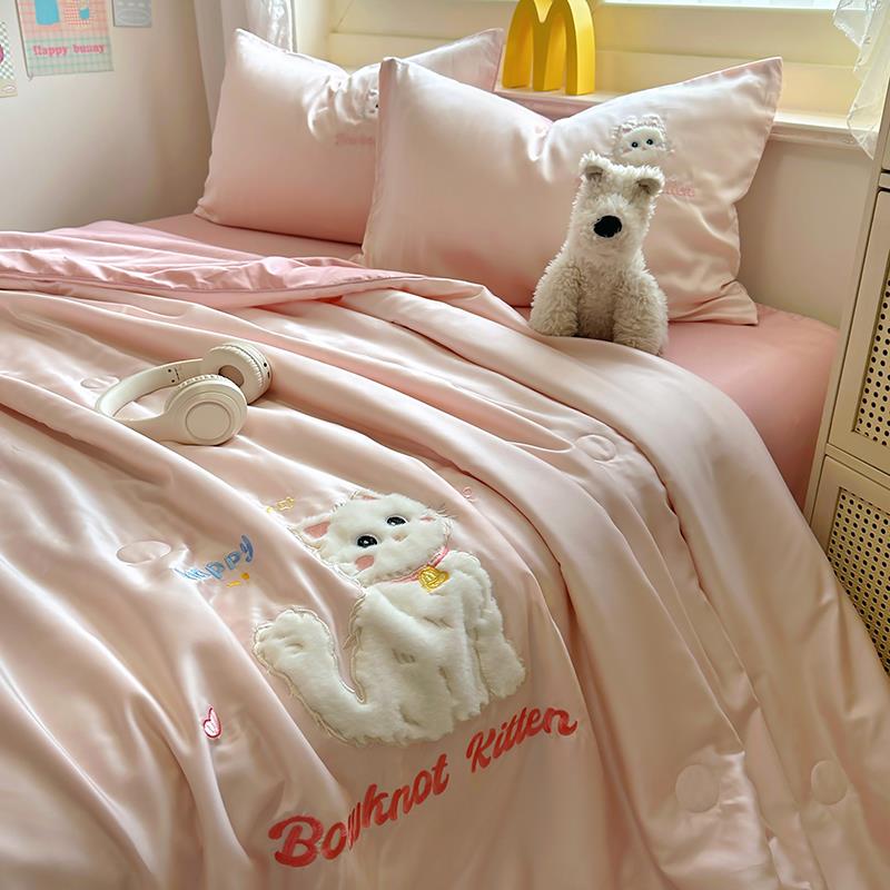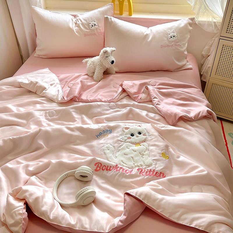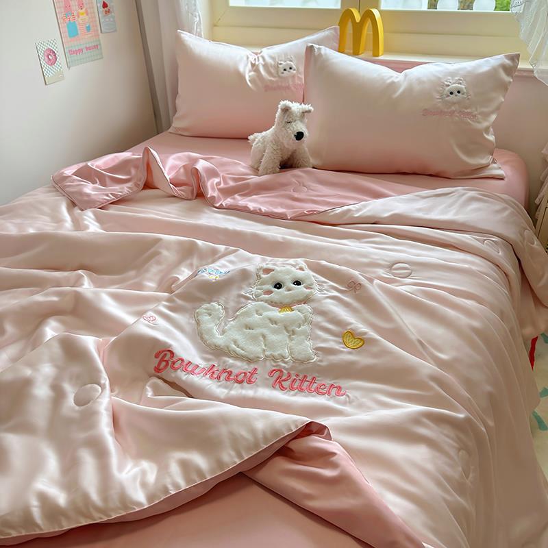 夏季水洗冰丝刺绣夏凉被四件套夏天丝滑裸睡夏被单双人宿舍空调被