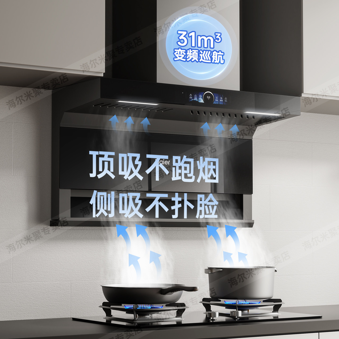 海尔变频抽油烟机EC759UD吸油机大吸力厨房顶侧双吸家用烟灶套装