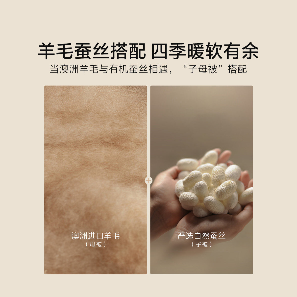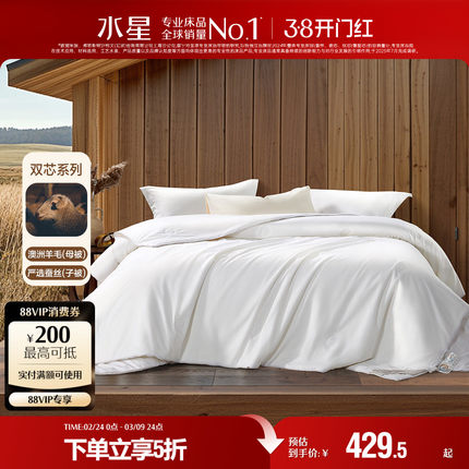 水星家纺蚕丝澳洲羊毛二合一被裸睡抑菌子母被子保暖被芯冬季床品