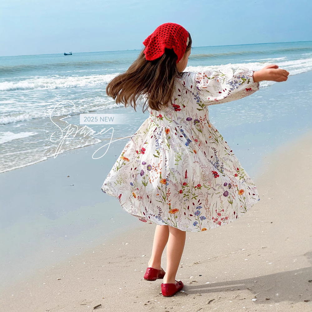 大童洋气女童连衣裙2025秋季新款浪漫女孩碎花长袖亲子款公主裙子