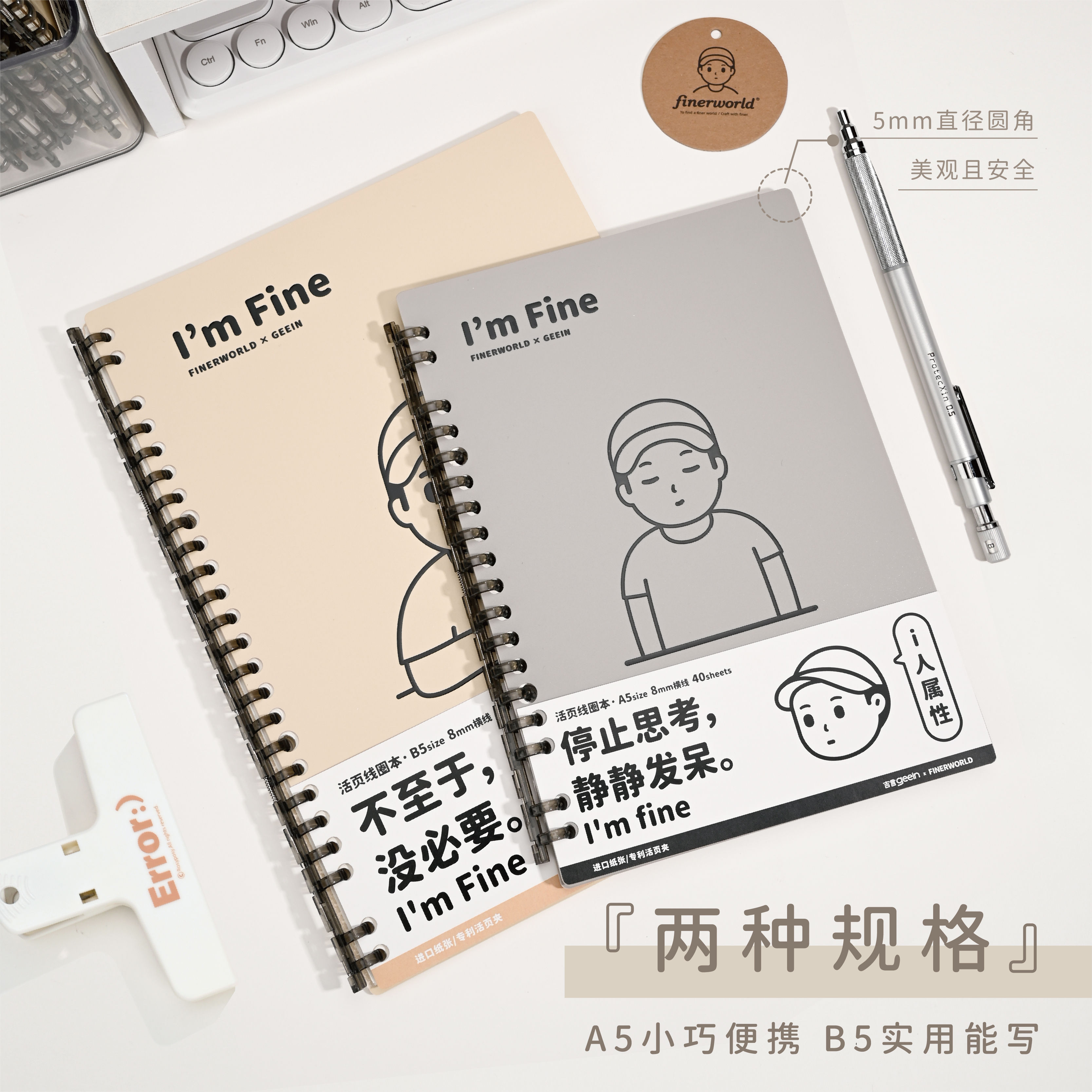 Finerworld淡淡系列活页线圈本b5学生笔记本子A5 记录本可拆卸