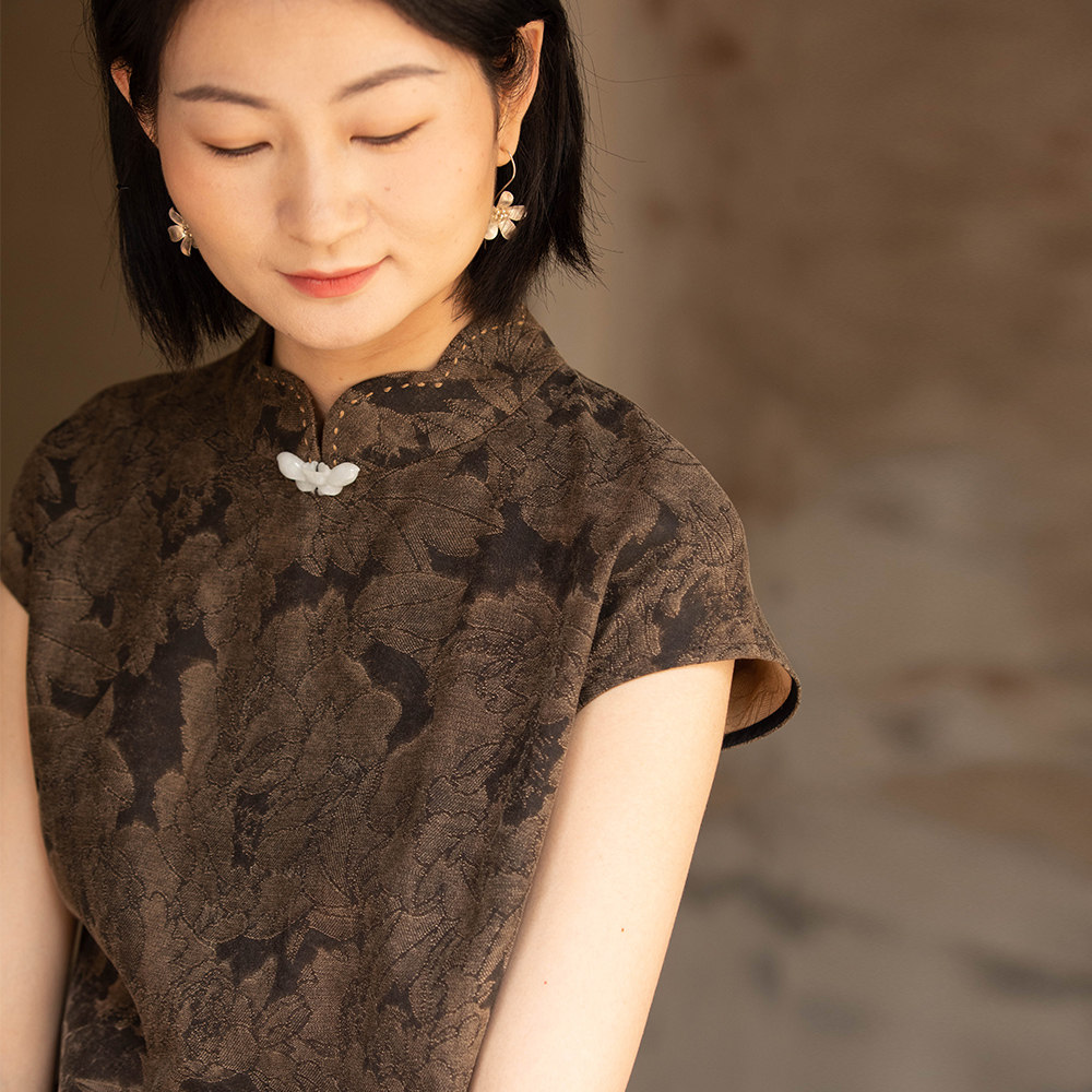 布小匠原创设计夏季桑蚕丝重磅绢纺香云纱连衣裙新中式改良旗袍女