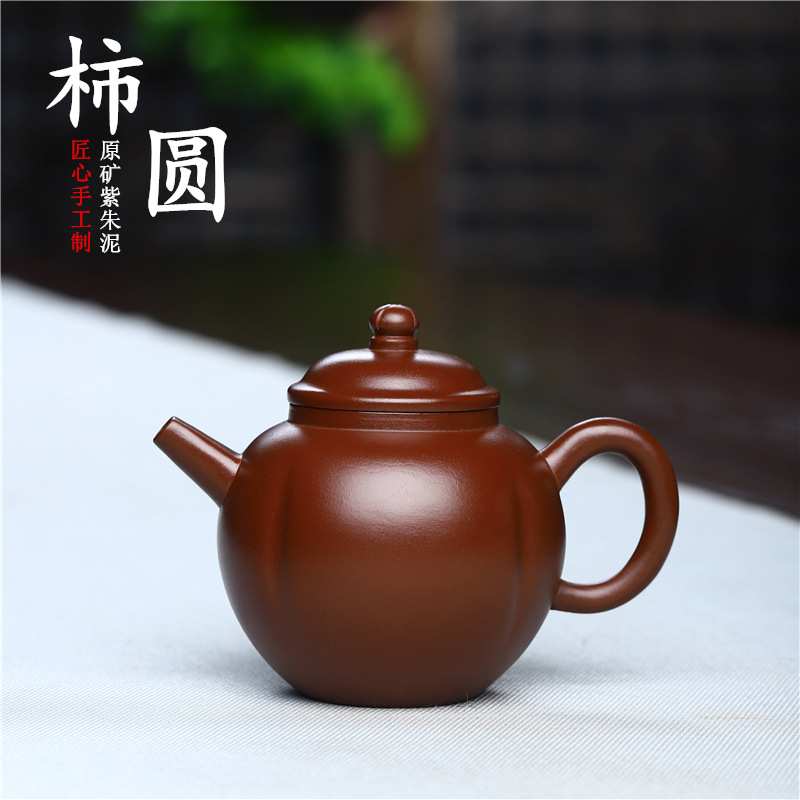 紫砂壶 厂家直供宜兴原矿紫朱泥茶壶 柿圆壶名家纯全手工茶壶