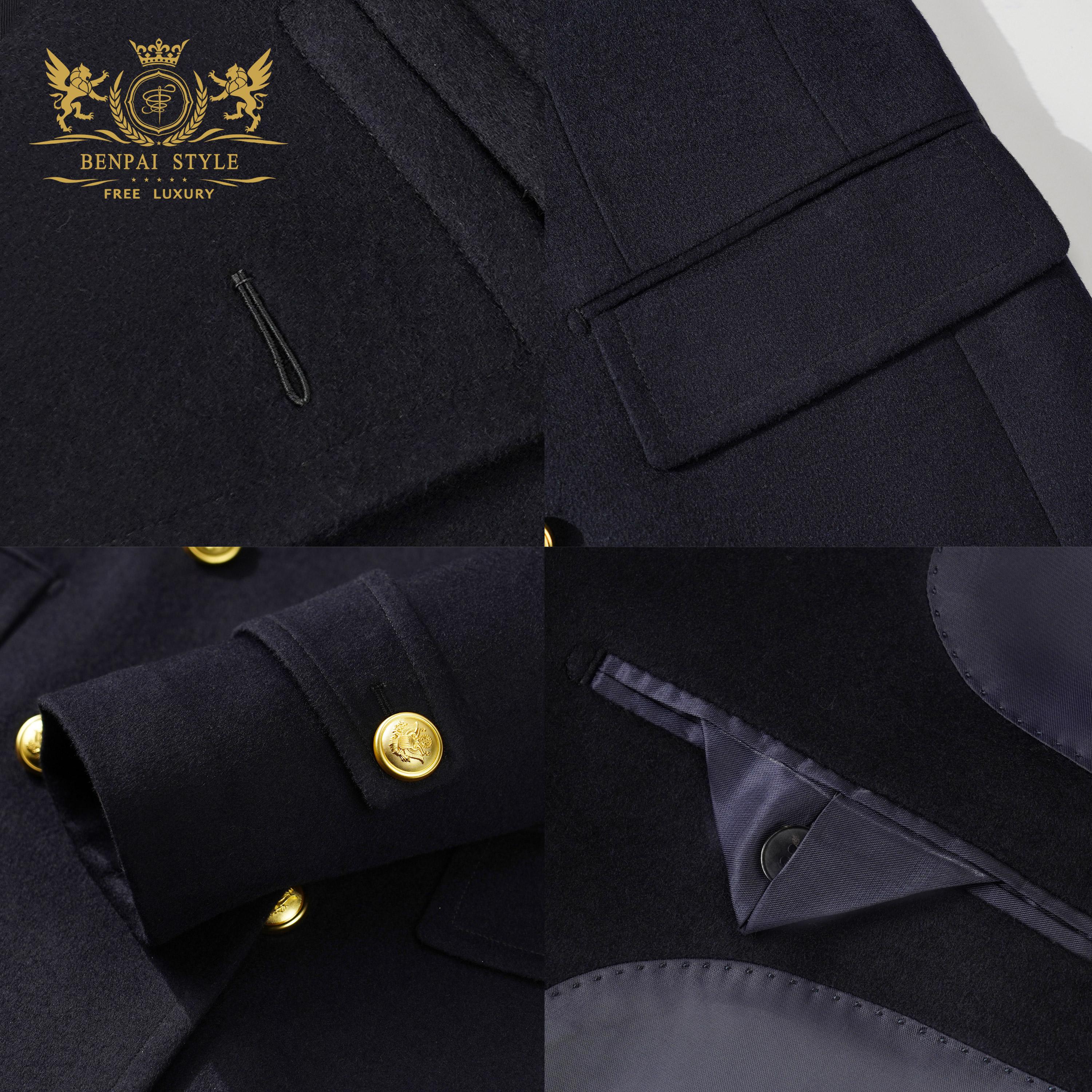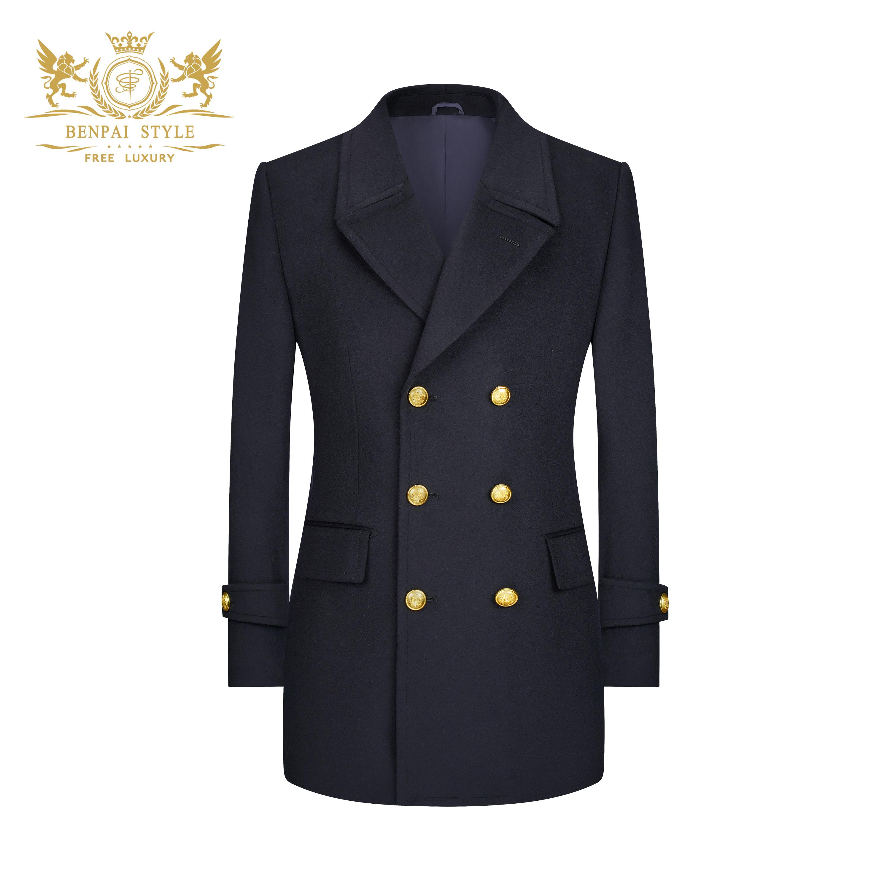 羊毛大衣男高档英伦双排扣海军羊绒大衣短款男士毛呢外套PeaCoat