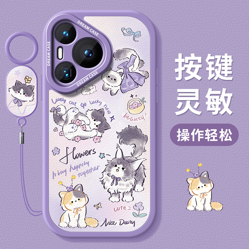 适用华为pura70手机壳新款p70pro+保护套全包pura70Ultra防摔女款p7o硅胶磨砂pure70可爱卡通猫咪por+软外壳