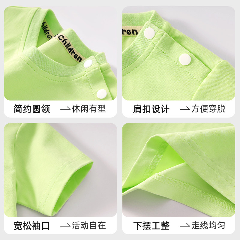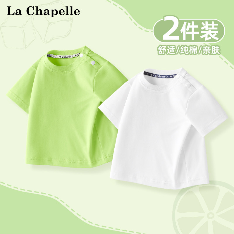 拉夏贝尔儿童短袖t恤2025新款纯色打底衫宝宝橙色半袖男女童夏装
