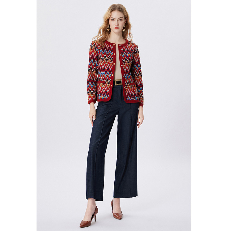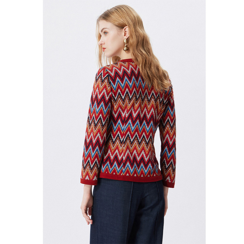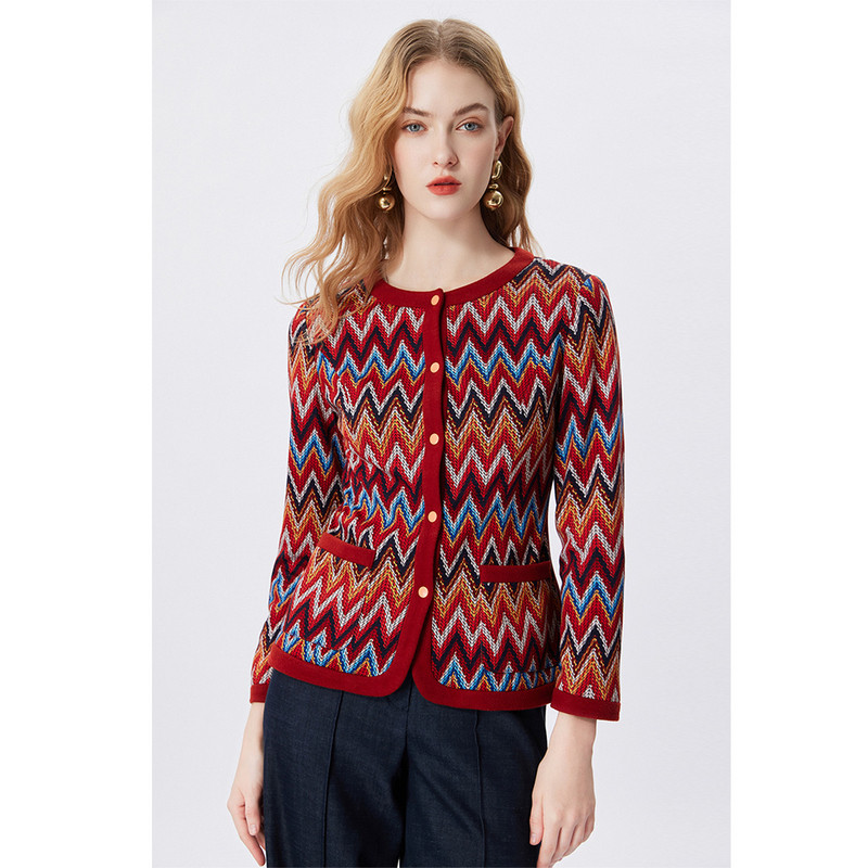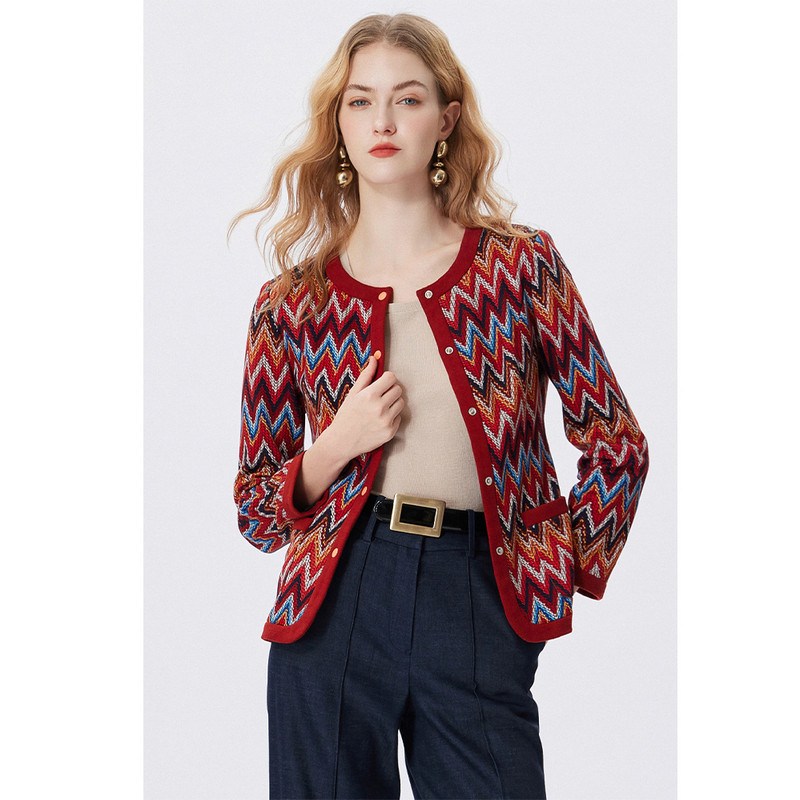 MORELINE沐兰春秋法式优雅波浪印花小香风短外套