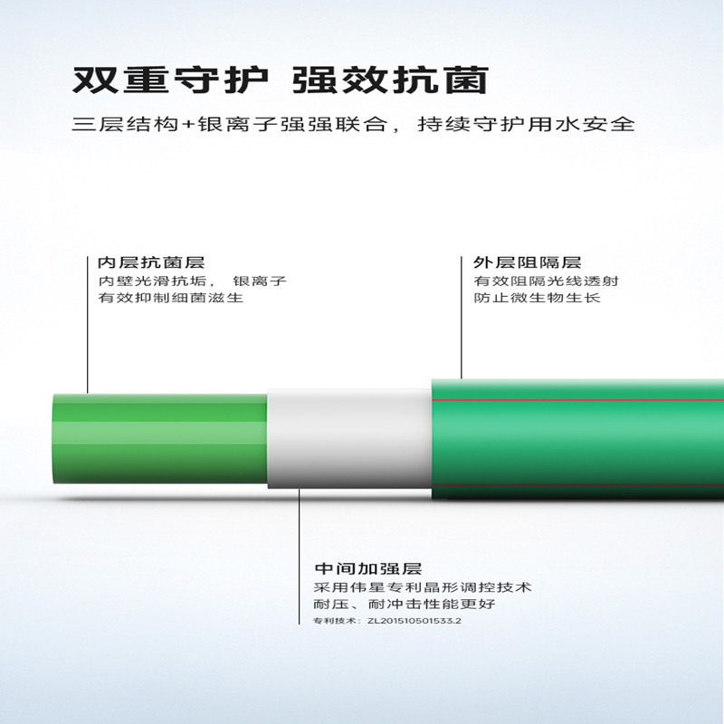 伟星PPR水晶抗菌管 家装高端三层管 自来水冷热水管 原厂正品加厚