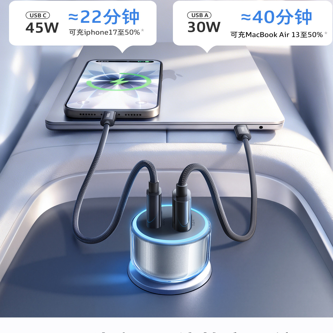图拉斯车载充电器点烟器超级快充适用苹果汽车车充转换插头一拖二
