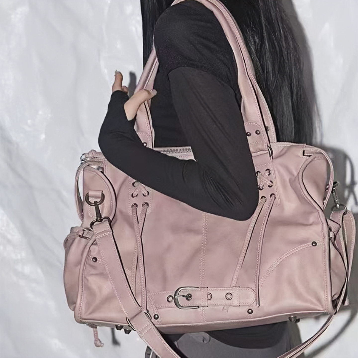 韩国新款FANCY CLUB托特包大容量雪允同款机车女包单肩手提斜挎包