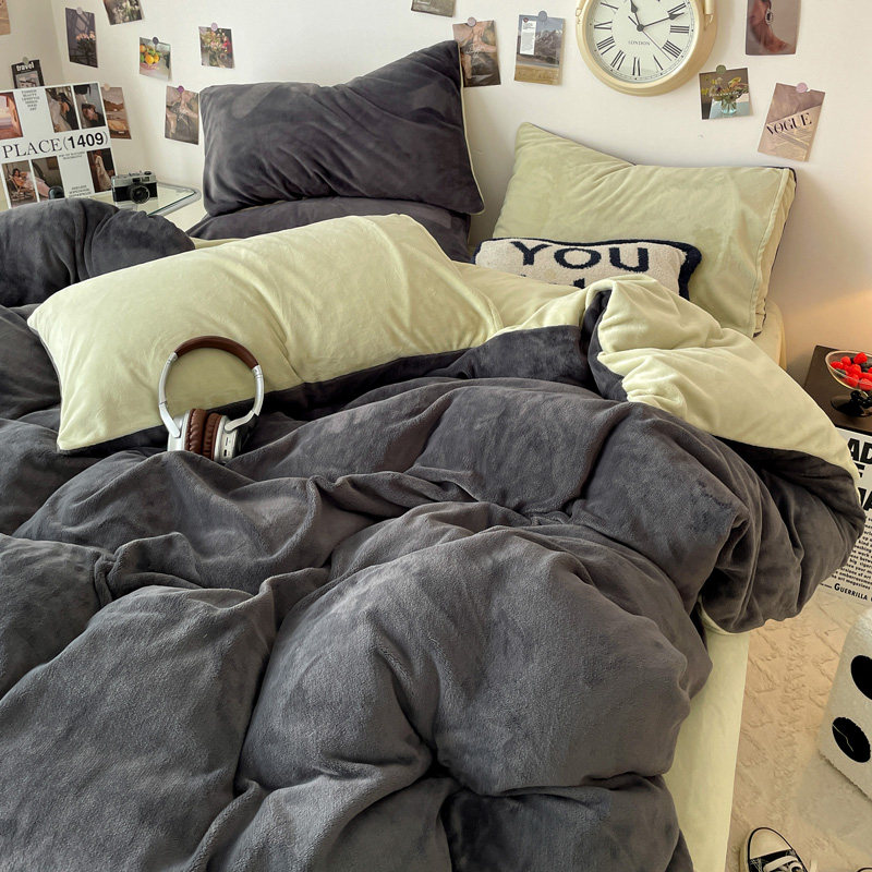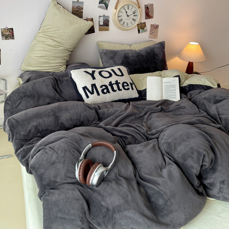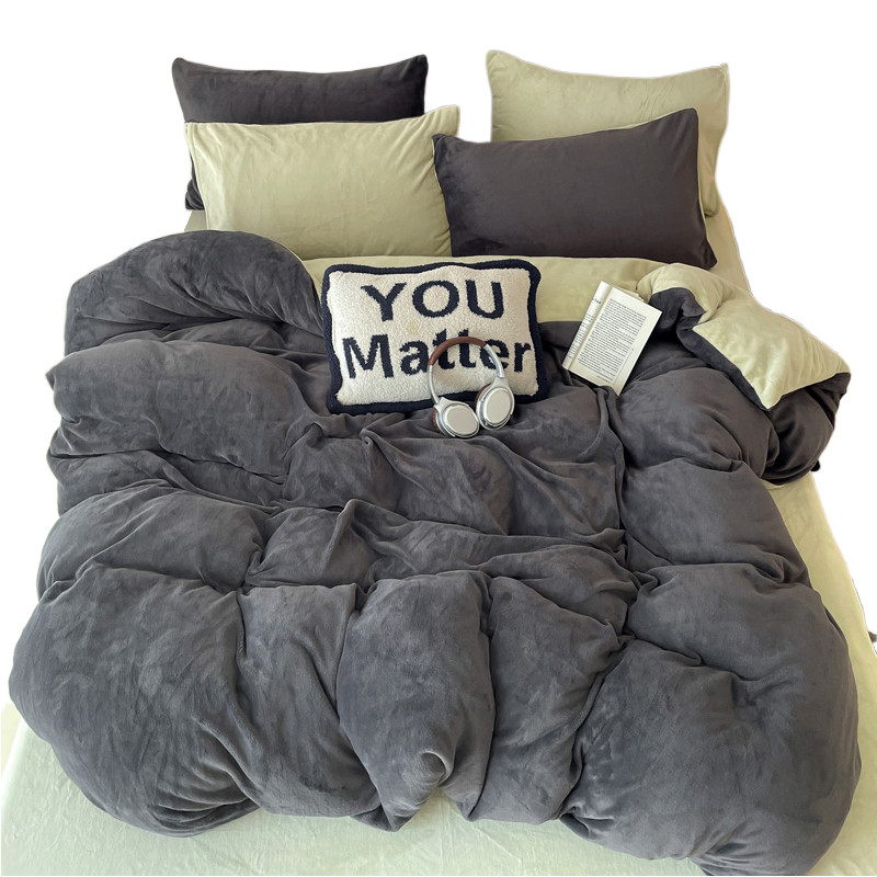 纯色牛奶绒床上四件套2024新款冬季加厚被套床单珊瑚法兰绒三件套