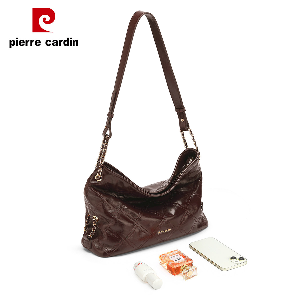 皮尔卡丹女包2025新款时尚百搭单肩腋下包头层牛皮大容量手提包包