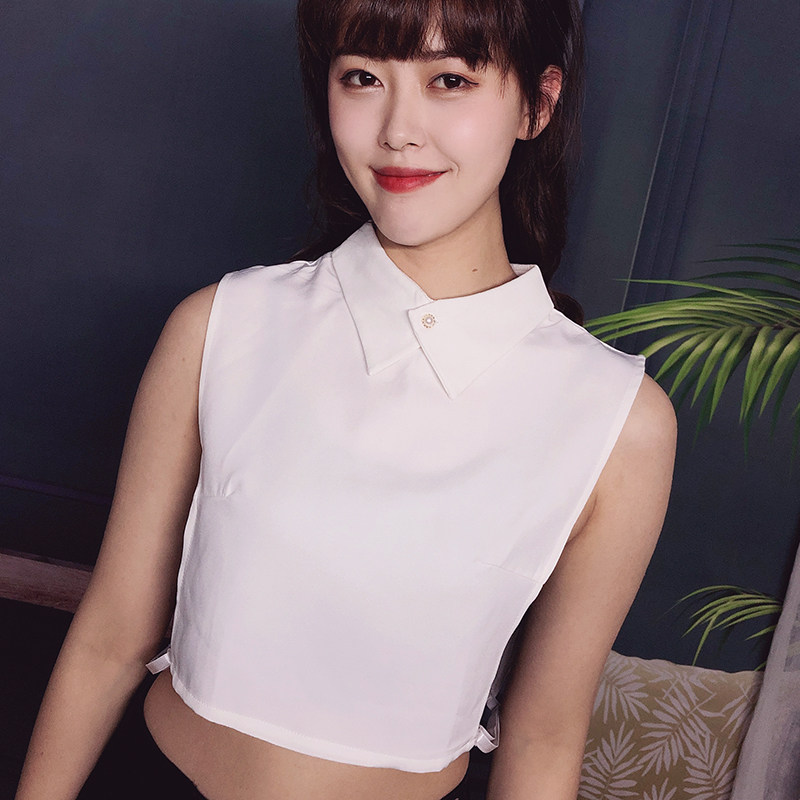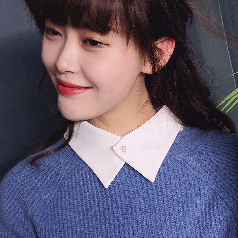 白色翻领衬衫假领子女百搭假领春夏装饰内搭打底衬衣珍珠扣假衣领