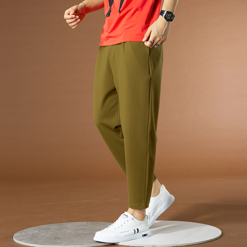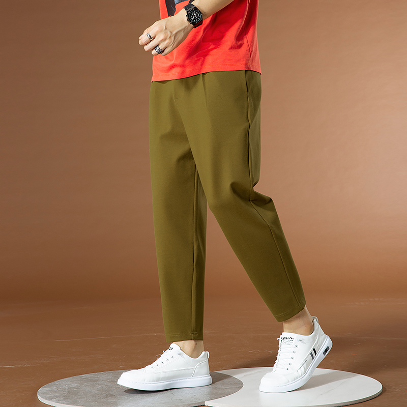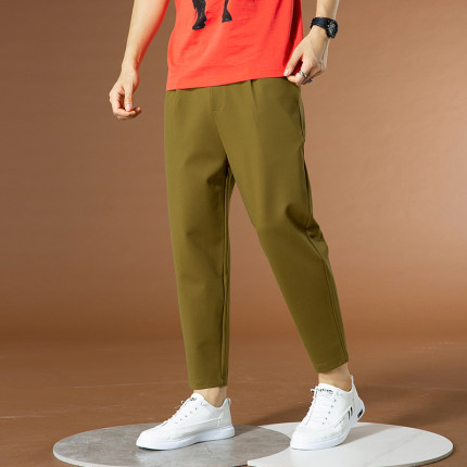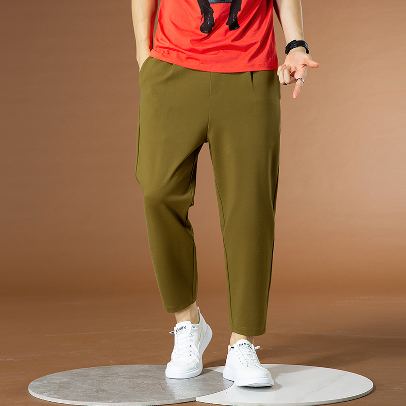 哈伦裤男垂感百搭运动九分小脚西裤宽松内抽绳姜黄色老爹休闲裤男