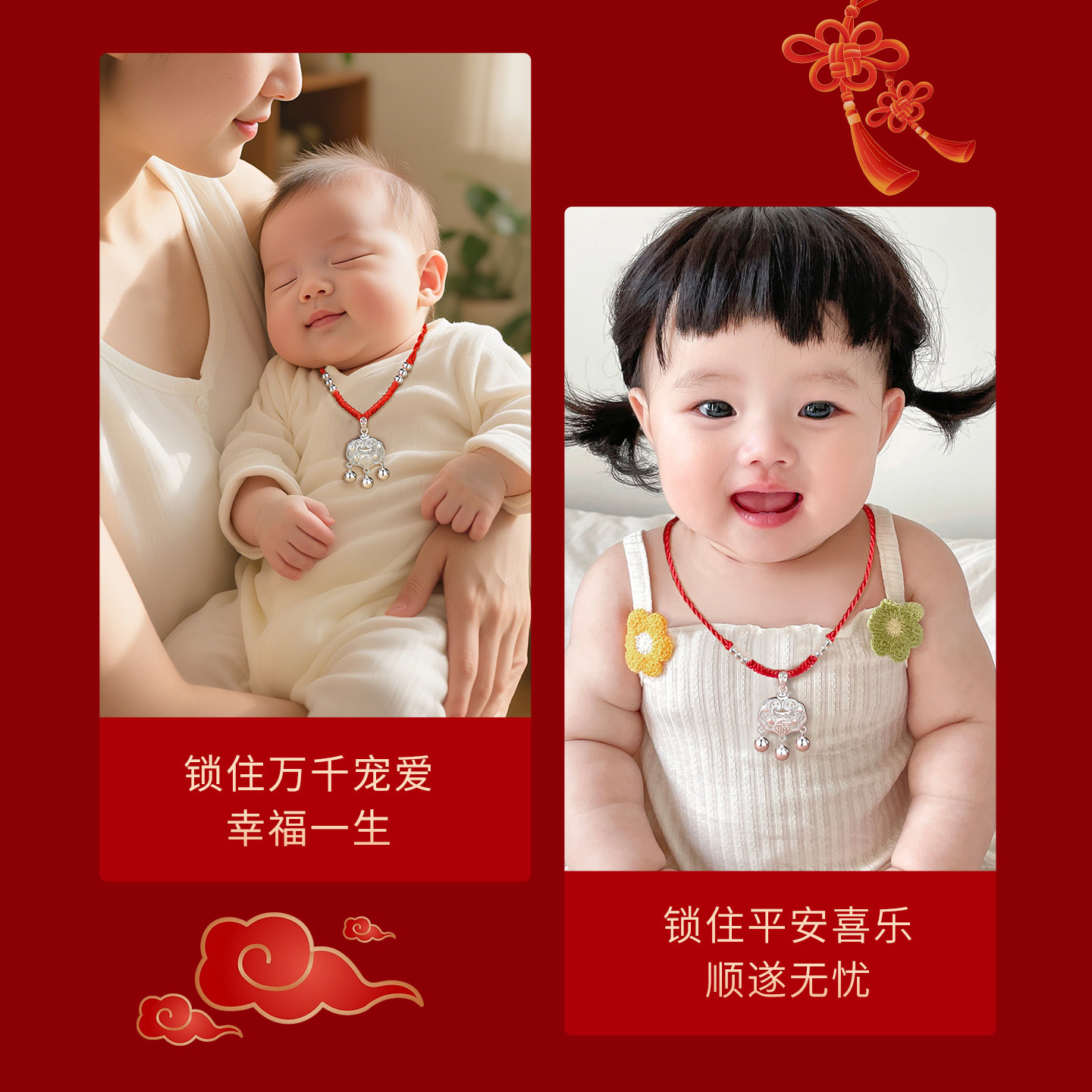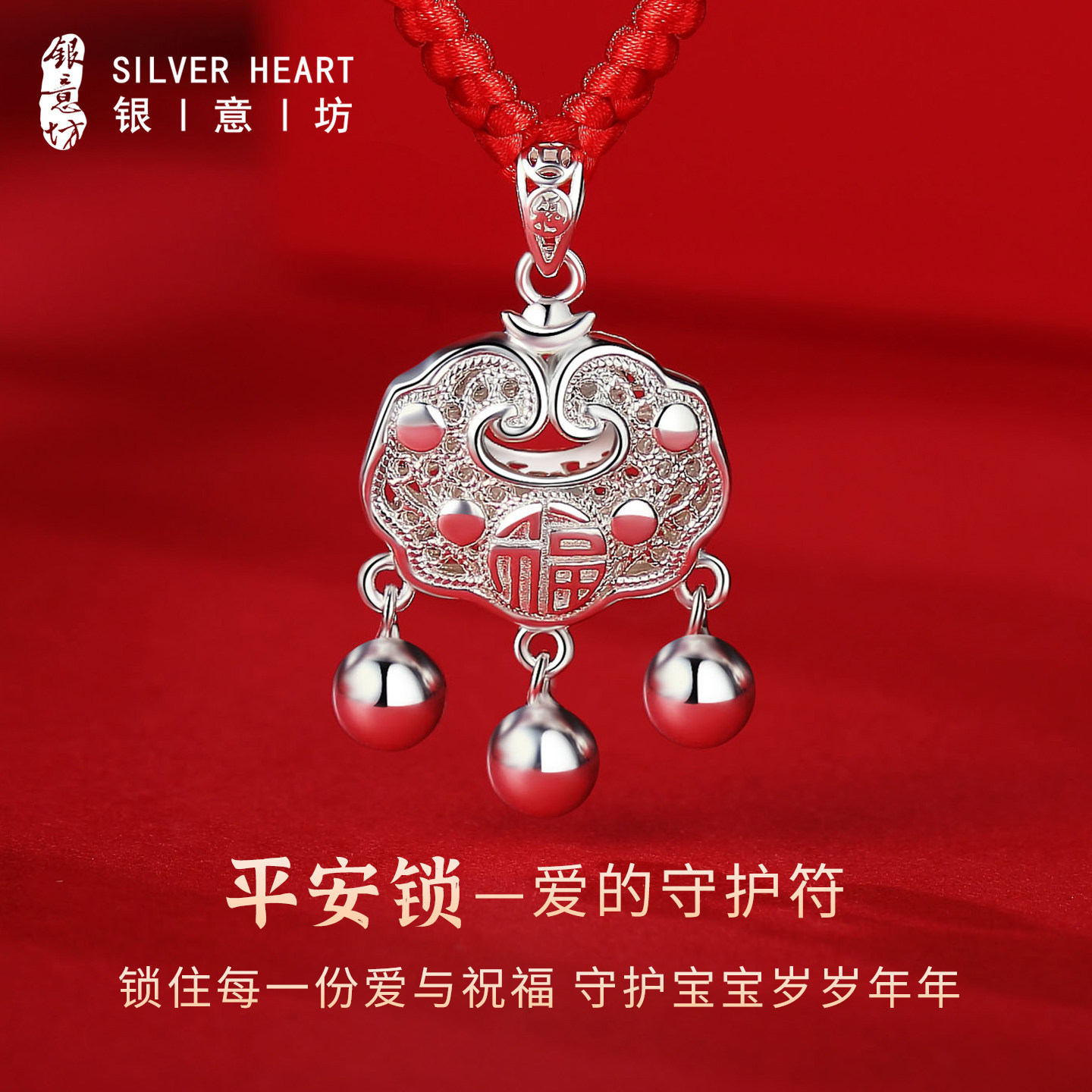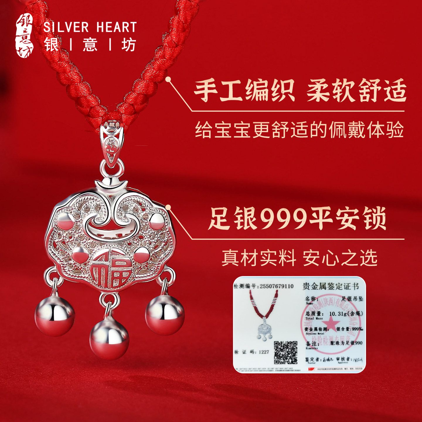 宝宝平安锁项链纯银999带证书