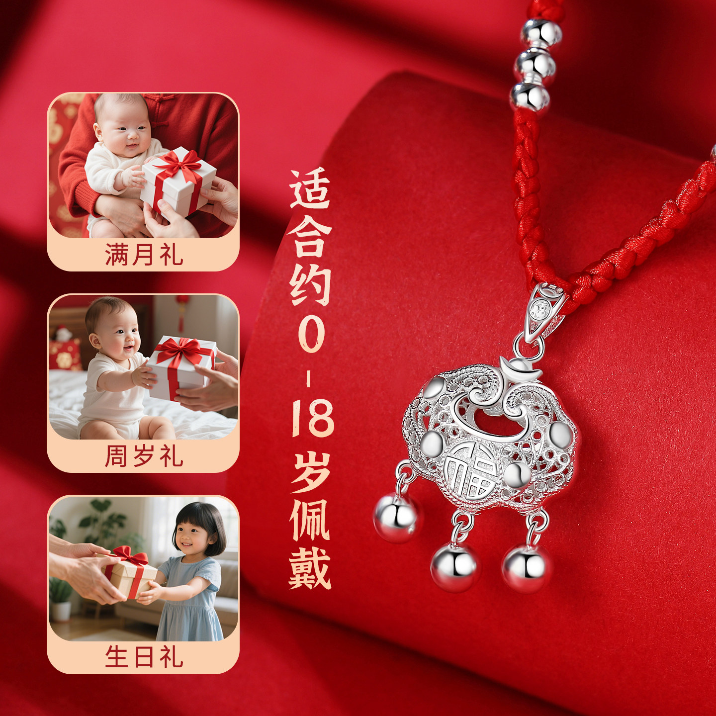 宝宝出生见面礼平安锁纯银999长命锁项链儿童女童男孩小银锁婴儿