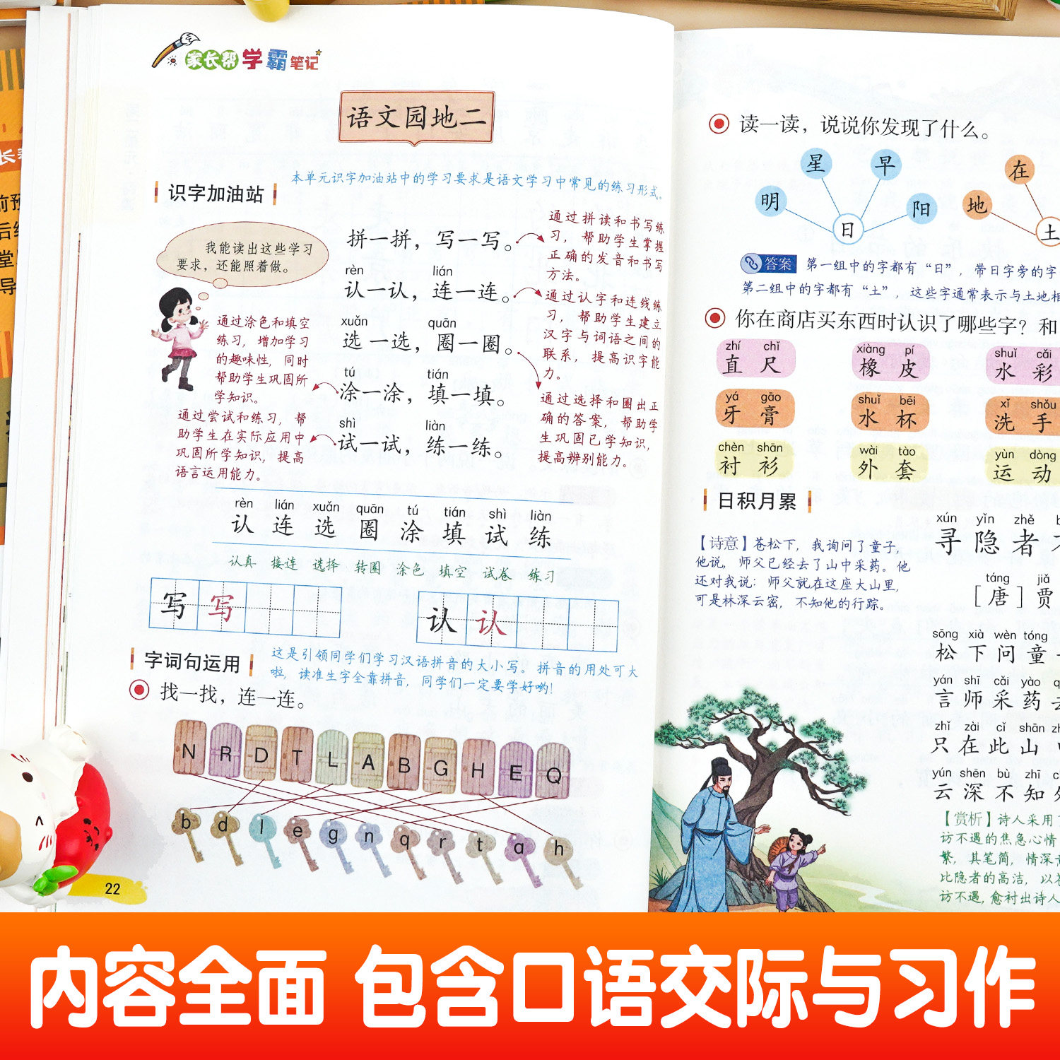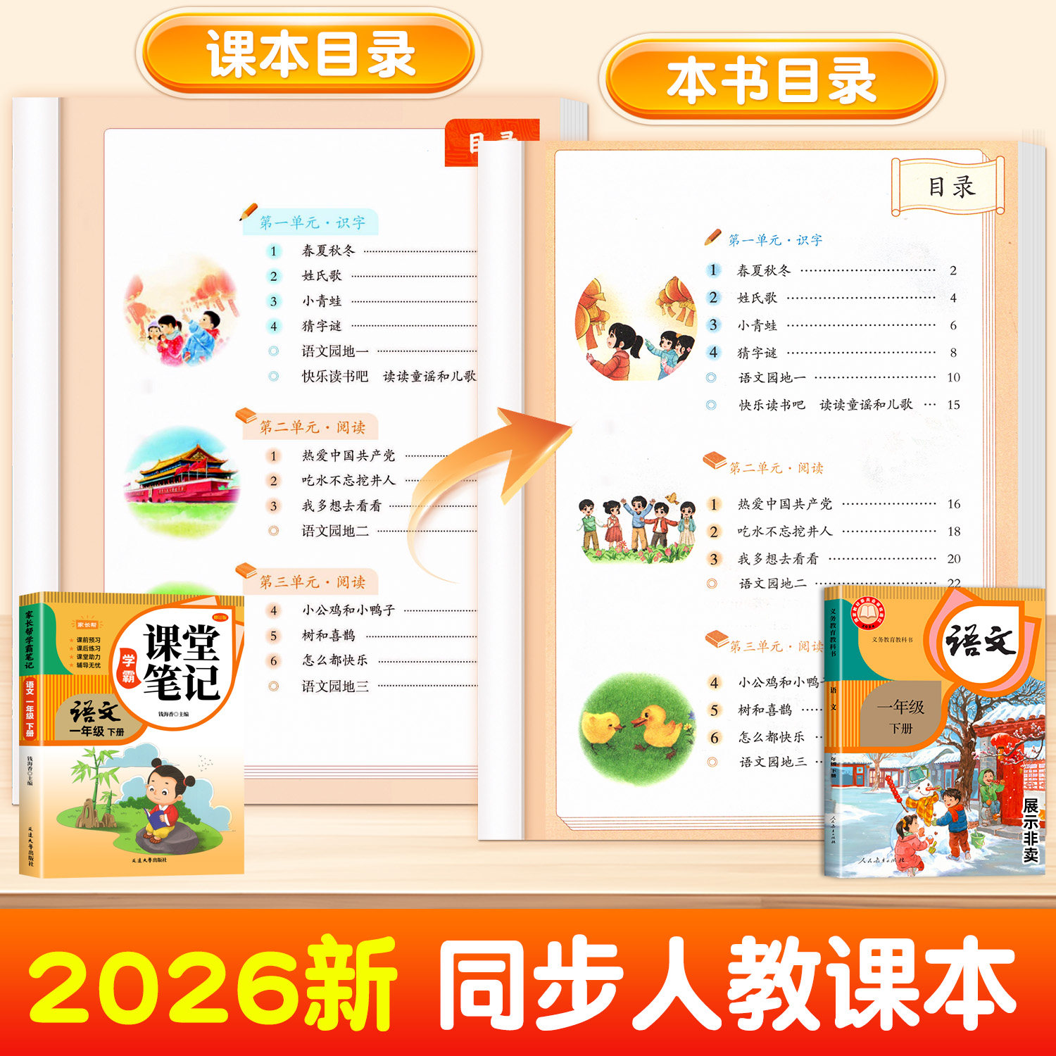 2026新版一年级下册课堂笔记人教版语文数学全套小学教材全解一下教辅课本同步解读正版课前预习复习资料书1年级上册黄冈随堂笔记