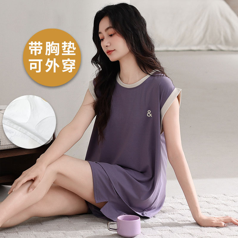 浪莎凉感莫代尔带胸垫睡衣女春夏