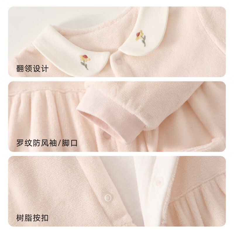 婴儿连体衣a类纯棉夹棉秋冬季女宝宝衣服哈衣薄棉摇粒绒外出服40g